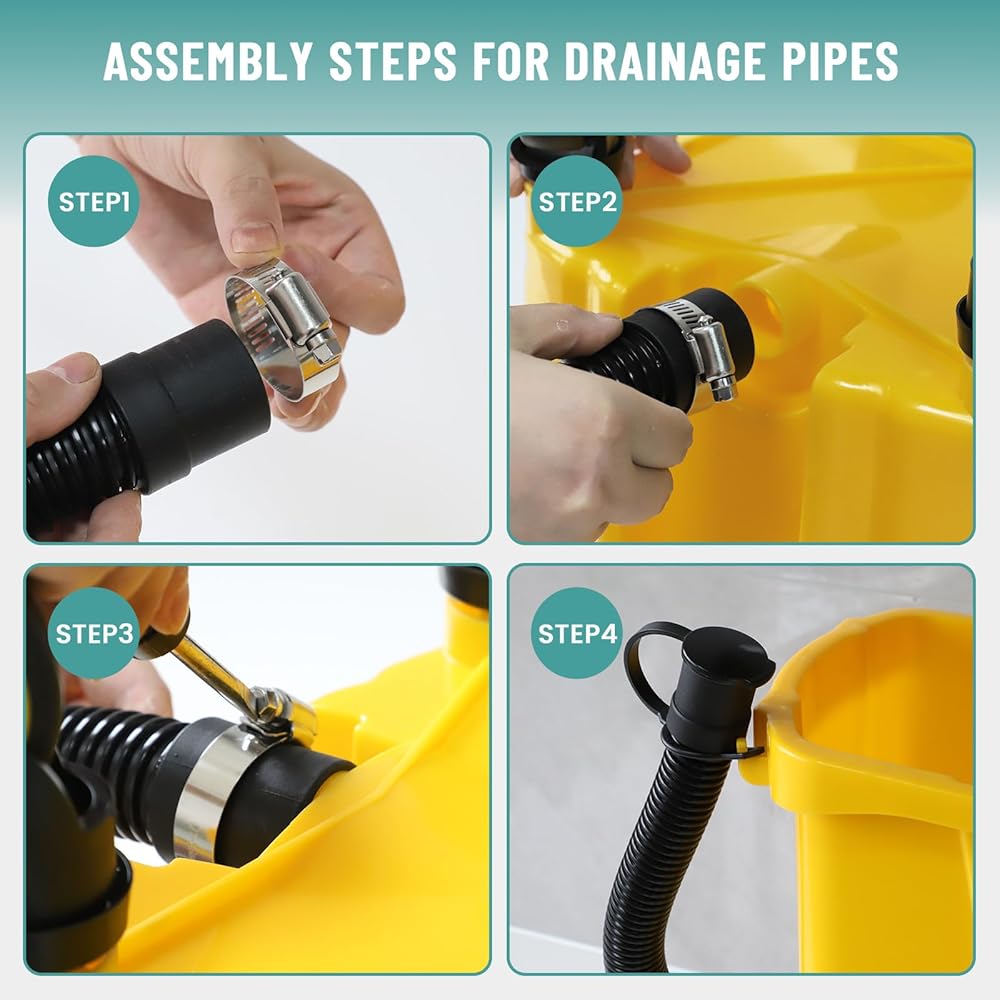 هيكل جديد: الدلو المدمج في الصرف، أنبوب الصرف في الجزء السفلي من الدلو، تصميمنا المبتكر يجعل الدلو يتميز بخرطوم تصريف، مما يضمن تصريف أسرع للمياه دون رفع الدلو لصب الماء المتسخ (نصائح: الدلو الخاص بنا فقط مع خرطوم الصرف، بدون مقابس)