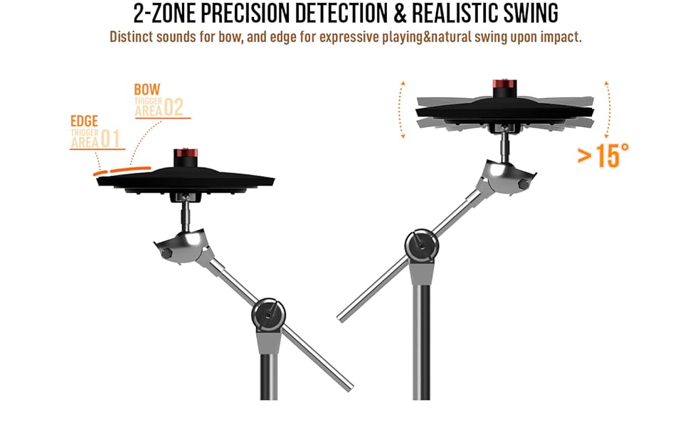 【التوافق】- التوافق مع وحدات الطبل الإلكترونية الرئيسية. استمتع بتجربة التوصيل والتشغيل البسيطة لترقية مجموعة الطبول الإلكترونية الخاصة بك على الفور.