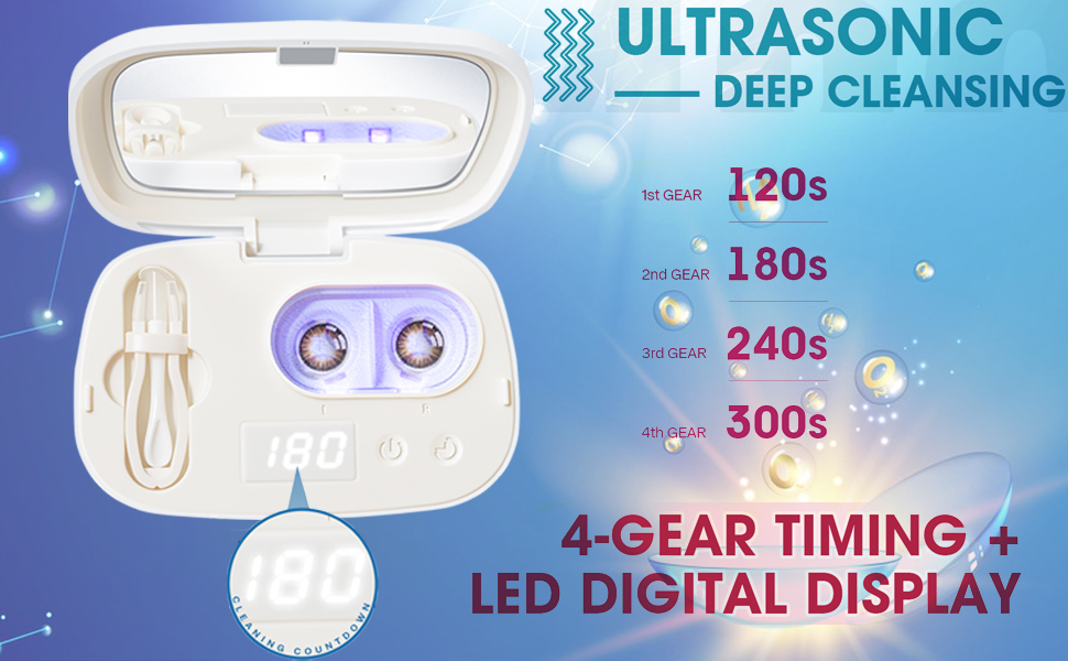 4 أوضاع تنظيف مخصصة: اختر وقت التنظيف المثالي (2-5 دقائق) عبر شاشة LED البسيطة. تعمل بأمان مع جميع أنواع العدسات (الناعمة، الصلبة، الملونة، RGP، OK). يغلق تلقائيا عند الانتهاء. (نصيحة: نظف العدسات 1-3 مرات أسبوعيًا للحصول على أفضل نظافة). تصميم أنيق ومحمول مزود بمرآة وصندوق نقع، مثالي للعناية بالعدسات أثناء التنقل.