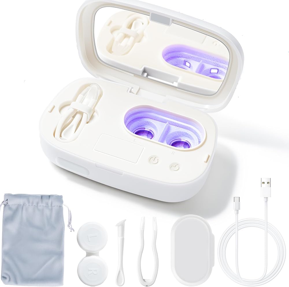 ضوء الأشعة فوق البنفسجية 360 درجة نظيف لعيون أكثر صحة: حافظ على حافظة العدسات الخاصة بك نظيفة وأكثر أمانًا. يعمل ضوء الأشعة فوق البنفسجية المدمج على تنظيف عدساتك بعمق بعد كل غسلة، مما يوفر تنظيفًا شاملاً بزاوية 360 درجة ولطيفًا ولن يلحق الضرر بعدساتك. يُستخدم جنبًا إلى جنب مع محلول العناية بالنظارات، ويستعيد جوهر العدسات اللاصقة النظيفة والشفافة.