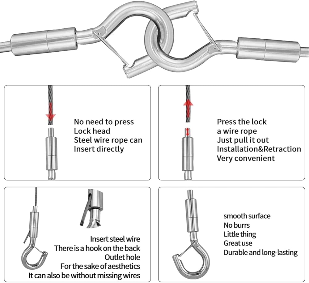 خطاف زنبركي، 10 قطع خطاف زنبركي حبل سلكي قابل للتعديل متعدد الوظائف لأدوات التعليق مثل المعرض (خطاف كبير جدًا)