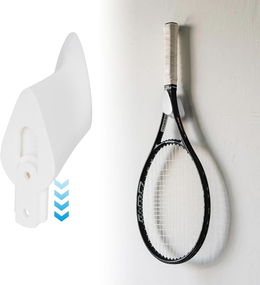 Note: These hooks are made using 3D printing technology and may require some polishing to ensure a tight and secure installation. Trust in the quality and design of our Hidden Mounting Holder for Single Tennis Racket to bring both functionality and style to your sports equipment organization.