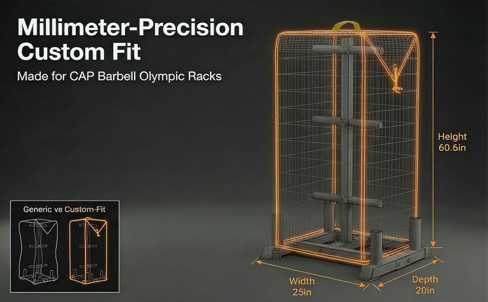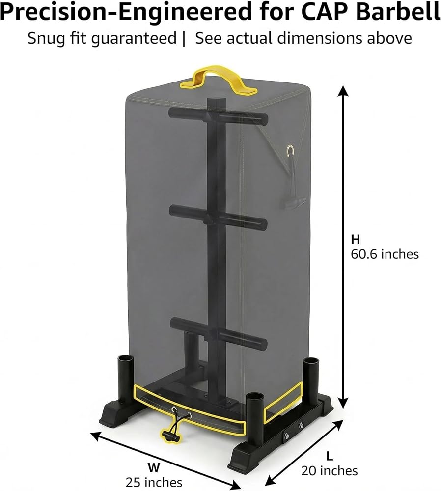 غطاء حامل الأثقال من CAP مناسب تمامًا | غطاء شجرة الوزن الأوليمبي مقاس 50.8 سم طولًا × 63.5 سم عرضًا × 60.6 سم ارتفاعًا، مخصص لرف شجرة ممتص الصدمات الأولمبي من CAP Barbell/رف تعليق تدريب القوة، مناسب تمامًا لرف الوزن لتغطية الألواح بدون انزلاق/ارتخاء