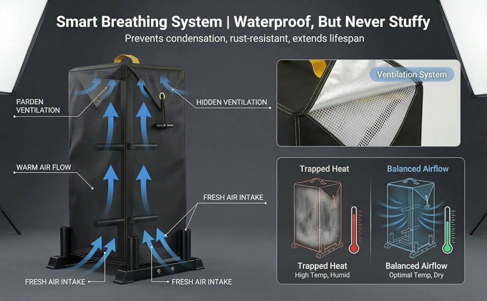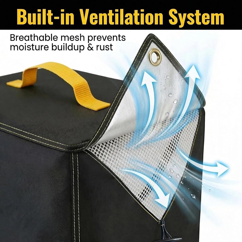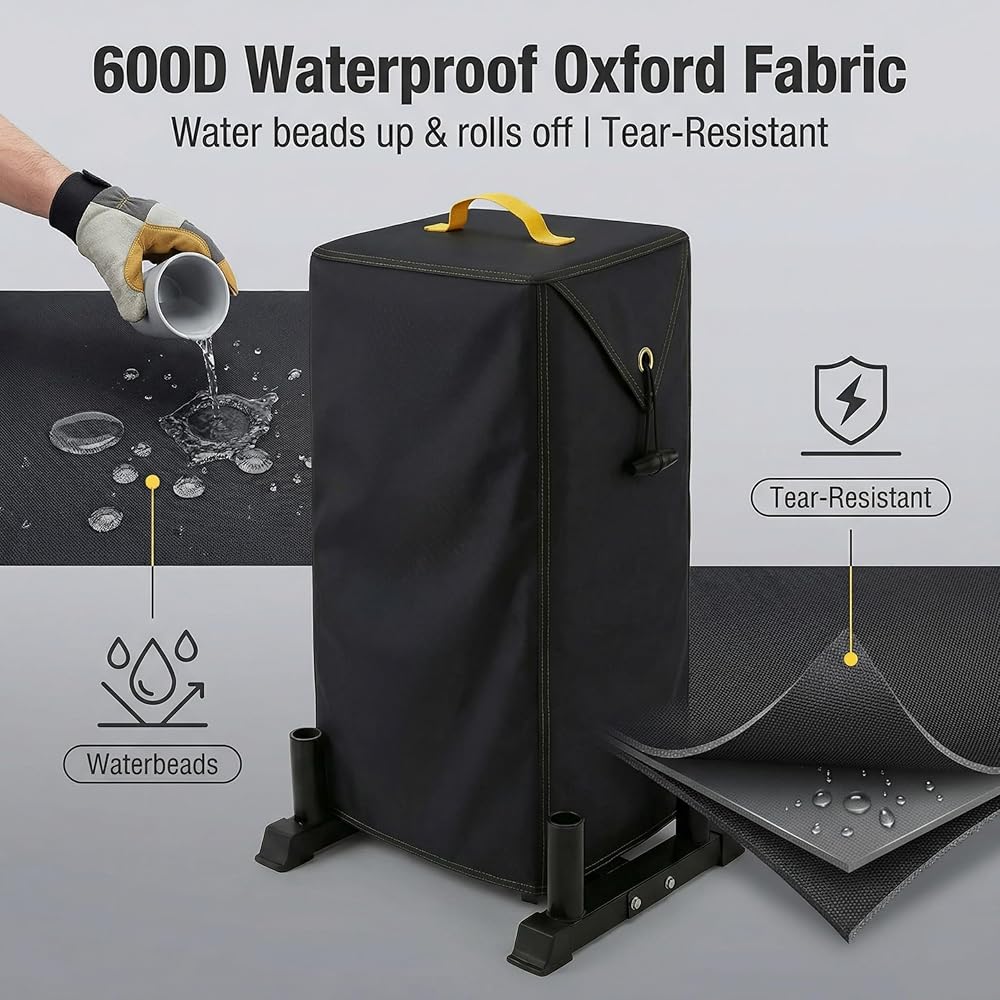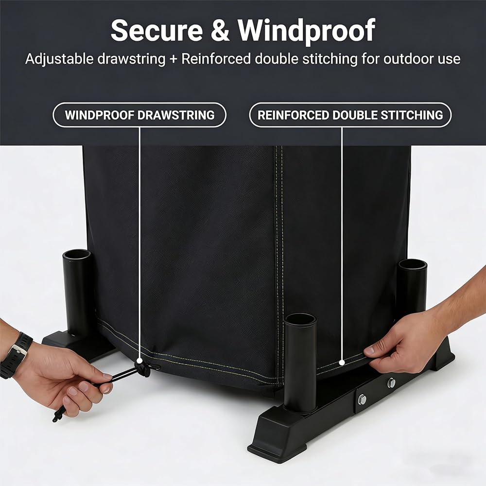 غطاء حامل الأثقال من CAP بتصميم متين | غطاء شجرة الوزن الأوليمبي مع فتحات قابلة للفتح وفتحات مقاومة للرياح، ومقبض حمل علوي لسهولة الاستخدام، وخياطة مزدوجة صفراء، ورباط مقاوم للرياح وبطانة داخلية مطلية مقاومة للماء - مضادة للتكتل، ومضادة لنفخ الرياح، ومتانة معززة لرف الوزن لتغطية الألواح