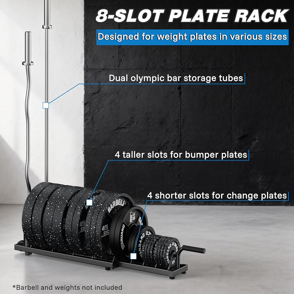• 【ترقية احترافية】 هذه ليست مجرد مساحة تخزين، ولكنها ترقية لصالة الألعاب الرياضية. يعمل التصميم الرأسي الذكي الذي يحافظ على بصمة القدم على زيادة كل بوصة مربعة من المساحة المحدودة لديك. من خلال إنشاء منطقة مخصصة ومنظمة لأثقل معداتك، فإنها تقلل من مخاطر الإصابة ووقت إعداد التمرين، وتحول صالة الألعاب الرياضية المنزلية الخاصة بك إلى بيئة أكثر أمانًا واحترافية وتحفيزًا للتدريب فيها.