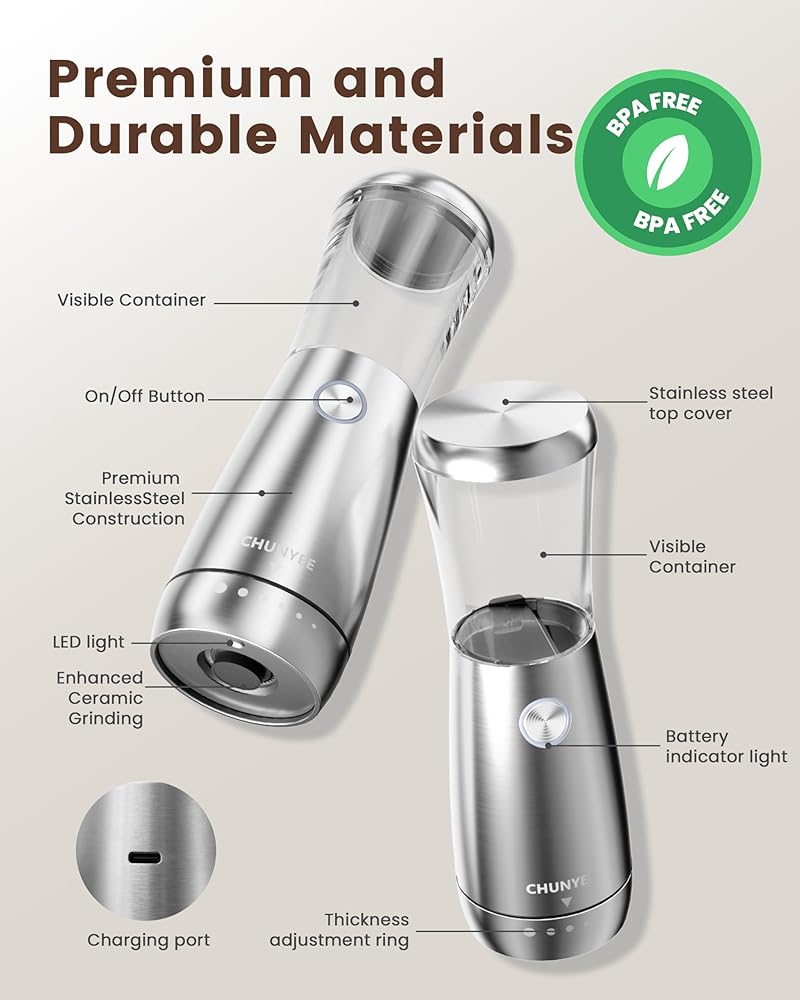 [اشتر بثقة] تتضمن العبوة 1x مطحنة فلفل، 1x مطحنة ملح، 1x USB c إلى كابل، و1x دليل. يتم تغطية منتجات Chunyee بسياسة استبدال أو استرداد الأموال لمدة 360 يومًا بدون متاعب. فريق الدعم لدينا جاهز للرد السريع خلال 12 ساعة