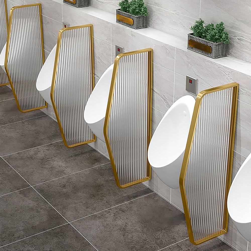 شاشة خصوصية المبولة للرجال باللون الذهبي - حاجز من الزجاج المقوى مثبت على الحائط، حاجز مرحاض من الفولاذ المقاوم للصدأ للمراكز التجارية والفنادق والحانات (قطعة واحدة) in Kuwait