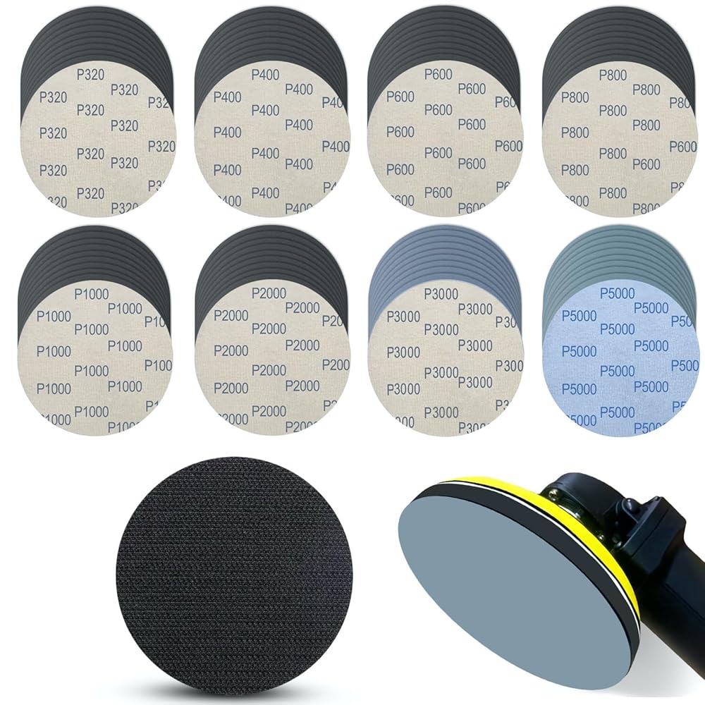 6 بوصات 81 قطعة من أقراص الصنفرة الرطبة والجافة، وسادة دعم إسفنجية بخطاف وحلقة، ورق صنفرة مقاوم للماء من كربيد السيليكون لصنفرة مدارية عشوائية، تلميع معادن خشب السيارات والصنفرة 320-5000 حبيبات متنوعة