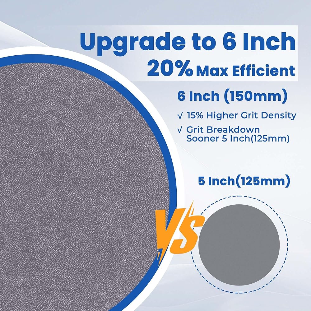 • Premium Material: This 6-inch sandpaper, crafted from high-quality materials, is ideal for both wet and dry sanding applications. It effectively removes sanding debris, extending its lifespan by up to three times. As particles in the abrasive surface are washed away, clogging is prevented and airborne dust is reduced, further extending its service life by up to three times. Perfect for automotive, glass, or water-cooled sanding tasks.