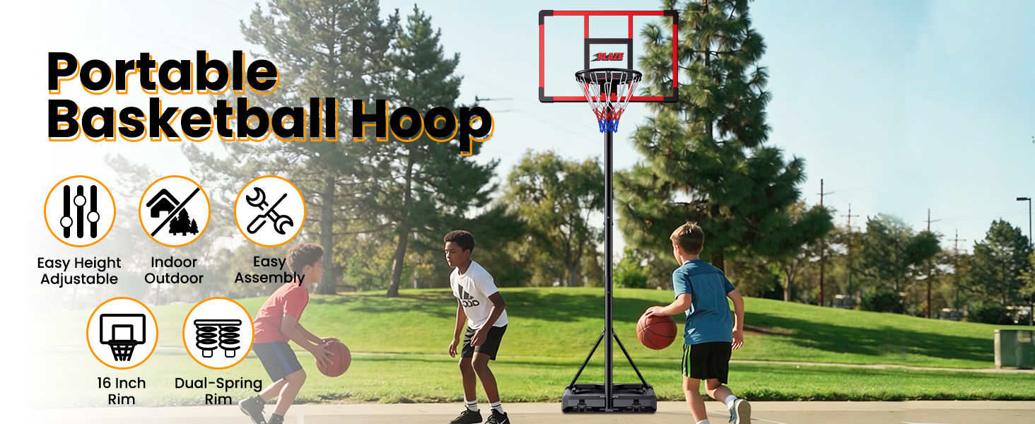 🏀Built for Outdoor Play- Crafted with high-strength materials and a reinforced, stable design, this basketball hoop combines a safe PC backboard with a shock-absorbing rim for durable play. Ideal for garage, backyard, driveway, playground,and more.