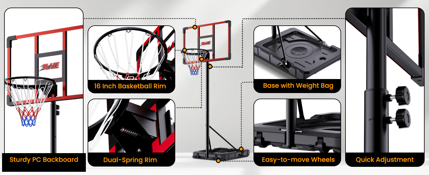 🏀Stable & Portable Design- This portable basketball hoop features built-in wheels,lightweight base allows easy movement and flexible placement, while the included weight bag enhances stability and ensures secure play during every game.