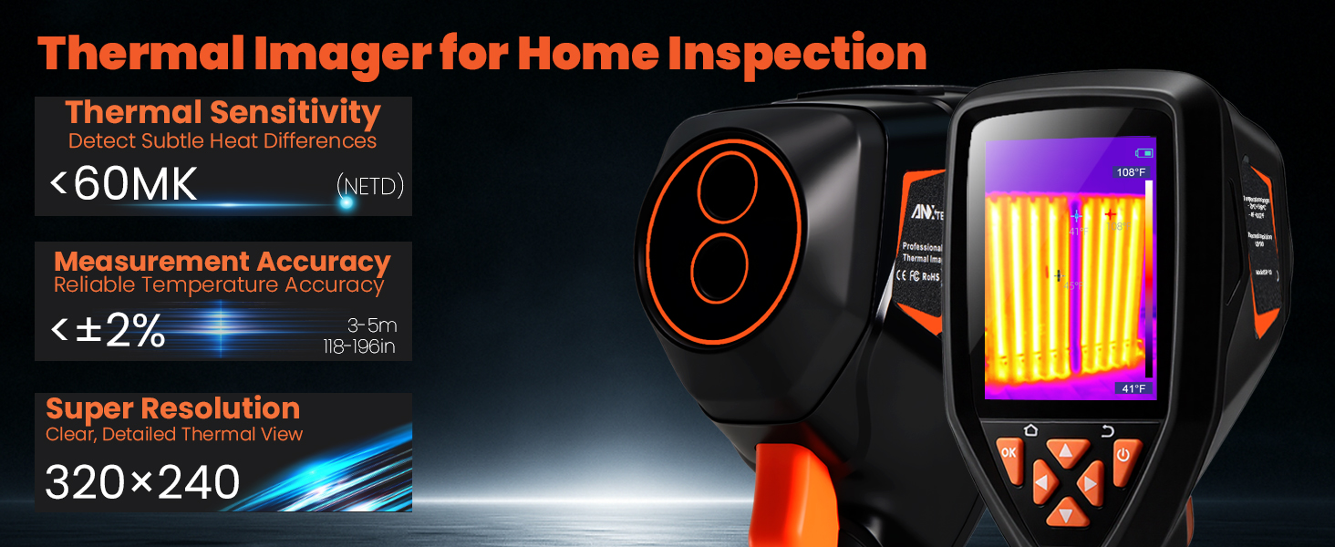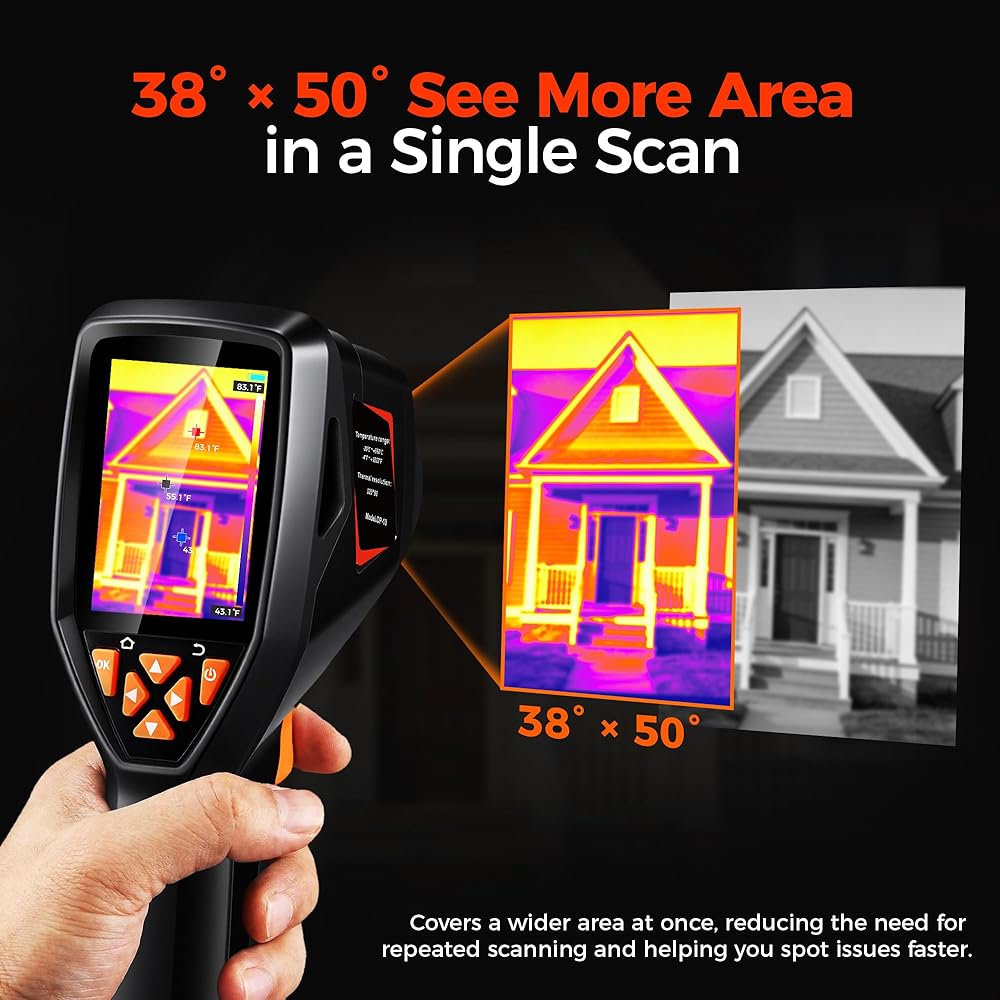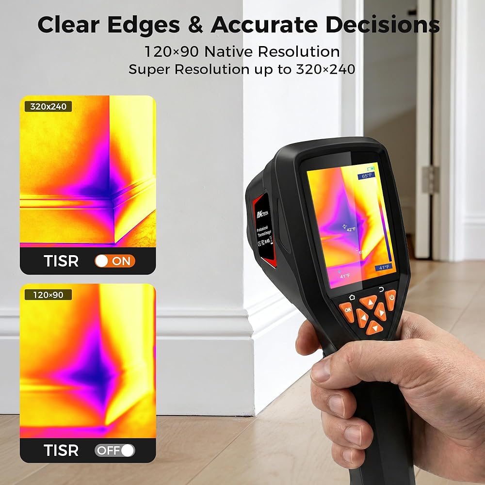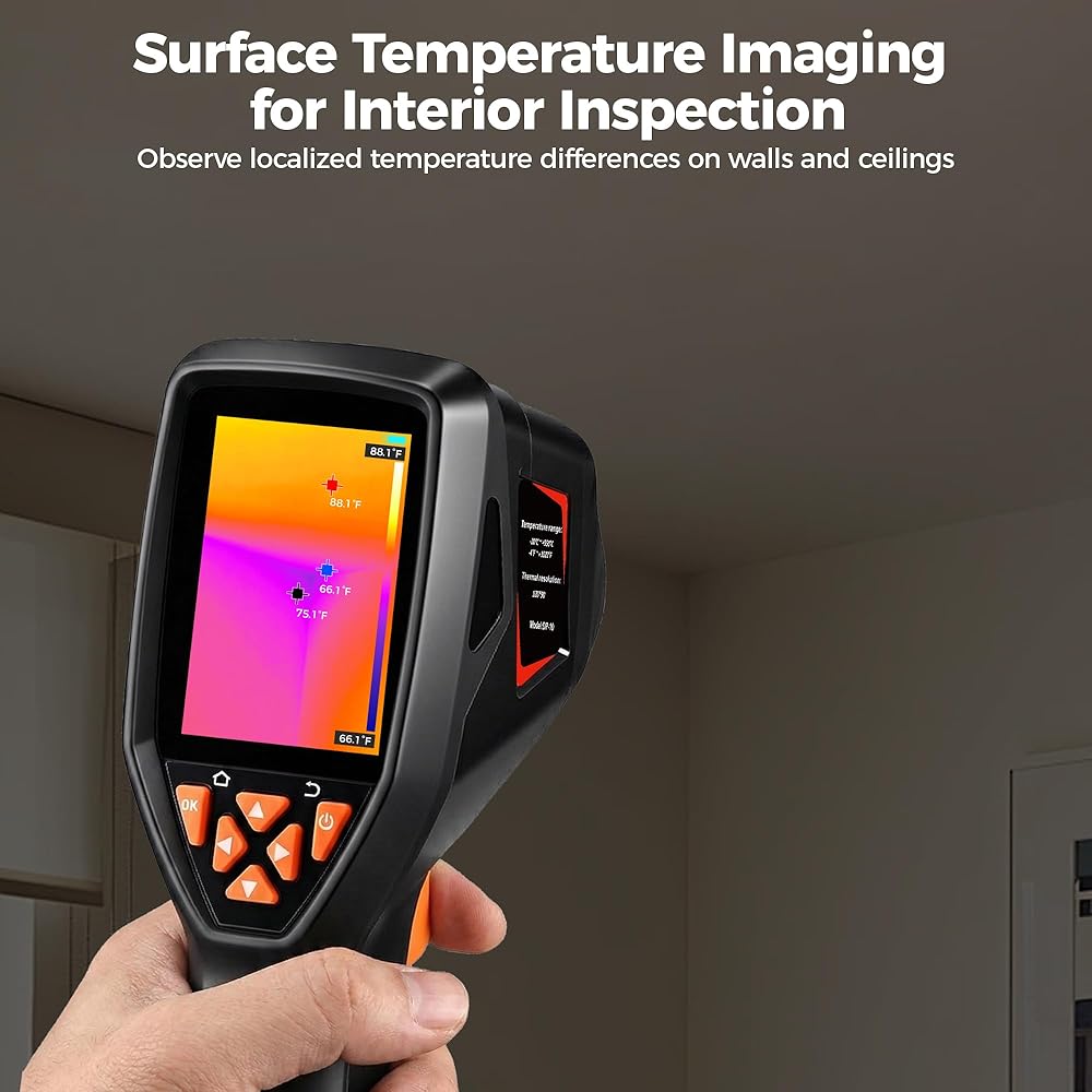 وضوح محسّن بدقة فائقة تبلغ 320×240: مزود بالأشعة تحت الحمراء الأصلية 120×90 ومُحسّن إلى دقة فائقة تبلغ 320×240، يساعدك DP10 على رؤية ما لا تستطيع العين المجردة رؤيته. من خلال تحديد البقع الرطبة خلف تسرب الحوائط الجافة والسقف مع ذوبان الثلج، يمكنك معالجة الرطوبة من المصدر قبل أن تتفاقم إلى أضرار هيكلية مكلفة أو مشكلات العفن. تمنحك هذه الرؤية الاستباقية ميزة الكشف المبكر، مما يحافظ على بيئة معيشتك صحية وجافة.