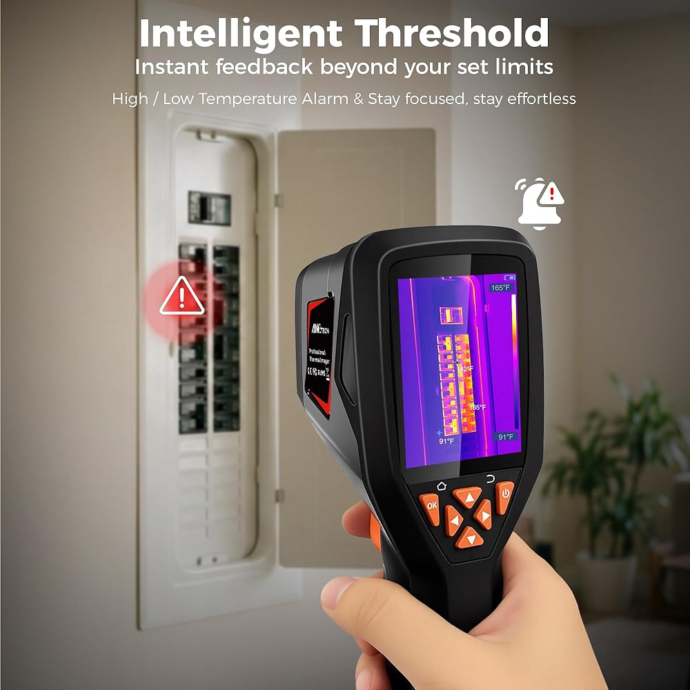 تنبيهات ذكية للسلامة وراحة البال التامة: مع نطاق درجة حرارة واسع من -4 درجة فهرنهايت إلى 1022 درجة فهرنهايت، يعمل DP10 كضمان موثوق لعمليات التفتيش التي تقوم بها بنفسك. يتميز بتتبع تلقائي للبقع الساخنة والباردة بالإضافة إلى منبهات درجة الحرارة القابلة للتخصيص، لإعلامك على الفور عند اكتشاف حرارة غير طبيعية في القواطع أو المنافذ أو المناطق الحرجة الأخرى. يساعدك نظام التنبيه في الوقت الفعلي هذا على اكتشاف المشكلات المحتملة مبكرًا، مما يضمن تشغيلًا منزليًا أكثر أمانًا وراحة بال أكبر لك ولعائلتك.