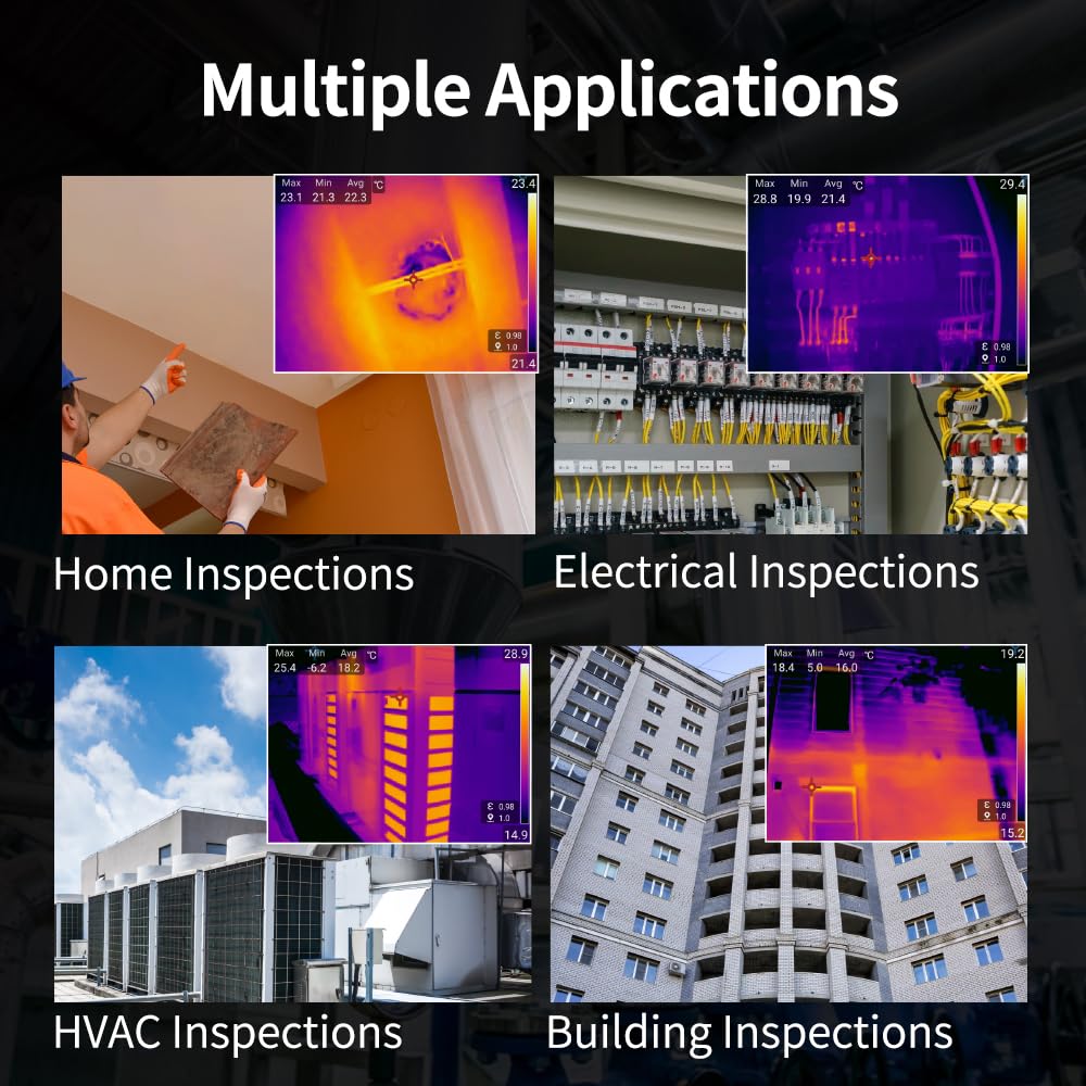 【أدوات ذكية لتشخيص أسرع】تتبع تلقائي للبقع الساخنة/الباردة، وانبعاث قابل للتعديل، ومنبه ألوان في الوقت الحقيقي لعتبات درجة الحرارة. مثالي لـ: 1 عمليات التفتيش الكهربائية: تحديد موقع الدوائر المحملة بشكل زائد أو التوصيلات الخاطئة. 2 عمليات فحص التدفئة والتهوية وتكييف الهواء: تحديد تسرب غاز التبريد أو عدم كفاءة مجاري الهواء. 3 عمليات فحص المباني: الكشف عن تسرب الرطوبة أو فقدان الطاقة خلف الجدران. 4 عمليات فحص المنزل: مشاكل تسخين الأرضية، وتسربات المنزل، وانسداد المجاري. 5 عمليات فحص PCBA: استخدم وظيفة التركيز اليدوي للكشف عن التوزيع غير الطبيعي لدرجة الحرارة في المكونات، ولا يزال من الممكن التقاط صور واضحة في مسافة 10 سم.