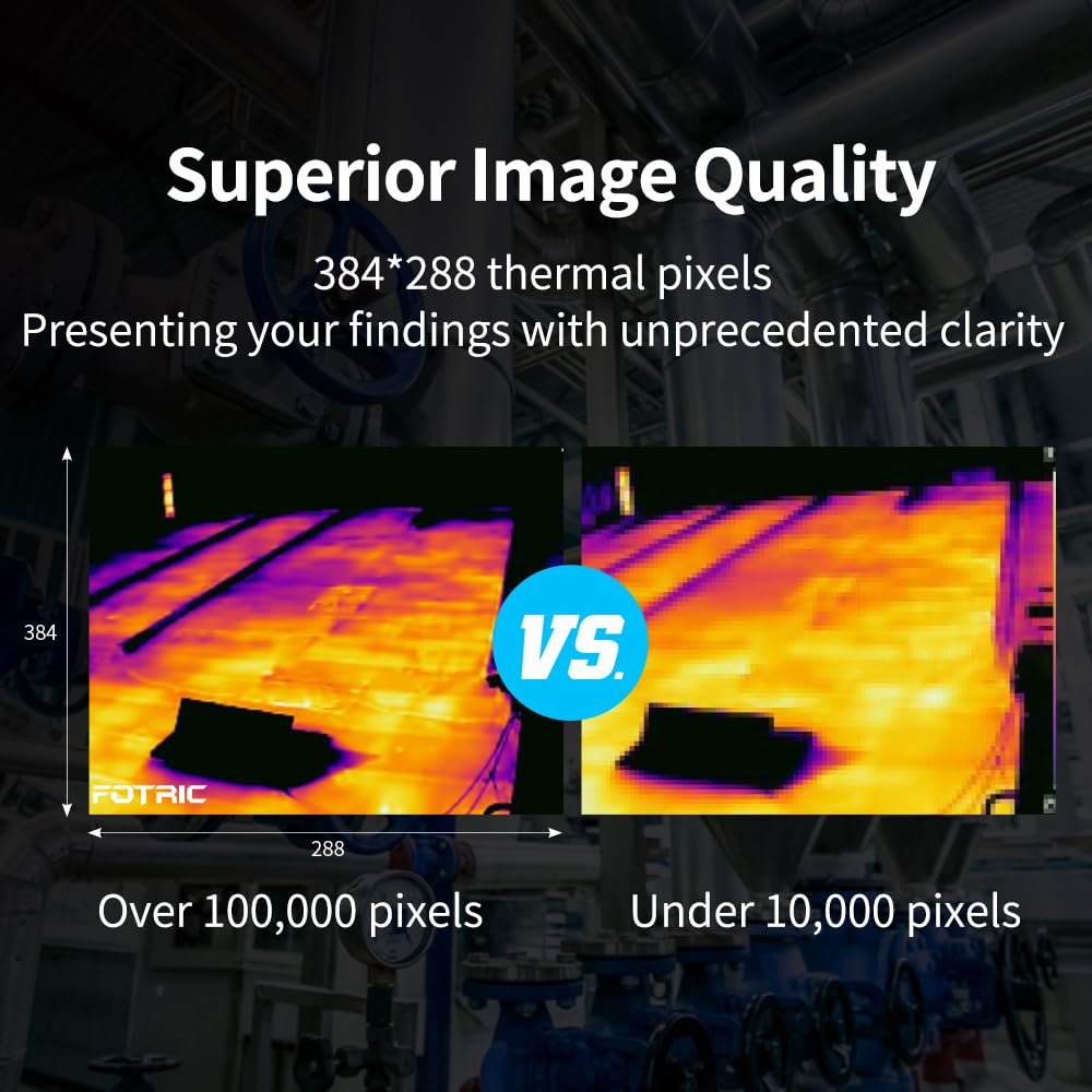 تصوير حراري بدرجة احترافية يجمع FOTRIC TK6 بين كاشف الأشعة تحت الحمراء الحقيقي 384 × 288 (110,592 بكسل حقيقي) مع عبوة مستشعر السيراميك، مما يضمن المتانة والدقة والموثوقية في البيئات الصناعية الصعبة. في صناعة التصوير الحراري، يحدد 384 × 288 وما فوق الفئة الاحترافية - تحت هذا النطاق، تعتمد معظم المنتجات على أساليب "up-res" محرفة أو خوارزمية تحاكي دقة أعلى بدلاً من التقاطها.