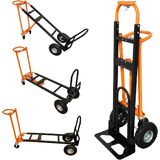 عربة قابلة للتحويل 4 في 1: قم بالتبديل بين ثلاثة أوضاع خالية من الأدوات، عجلتين في وضع مستقيم، وأربع عجلات قابلة للإمالة 45 درجة، وعربة مسطحة بأربع عجلات. يتعامل الوضع المستقيم مع الأراضي الوعرة، كما أن الإمالة بمقدار 45 درجة تناسب البضائع الطويلة، ومساحة التحميل في الوضع المسطح.
