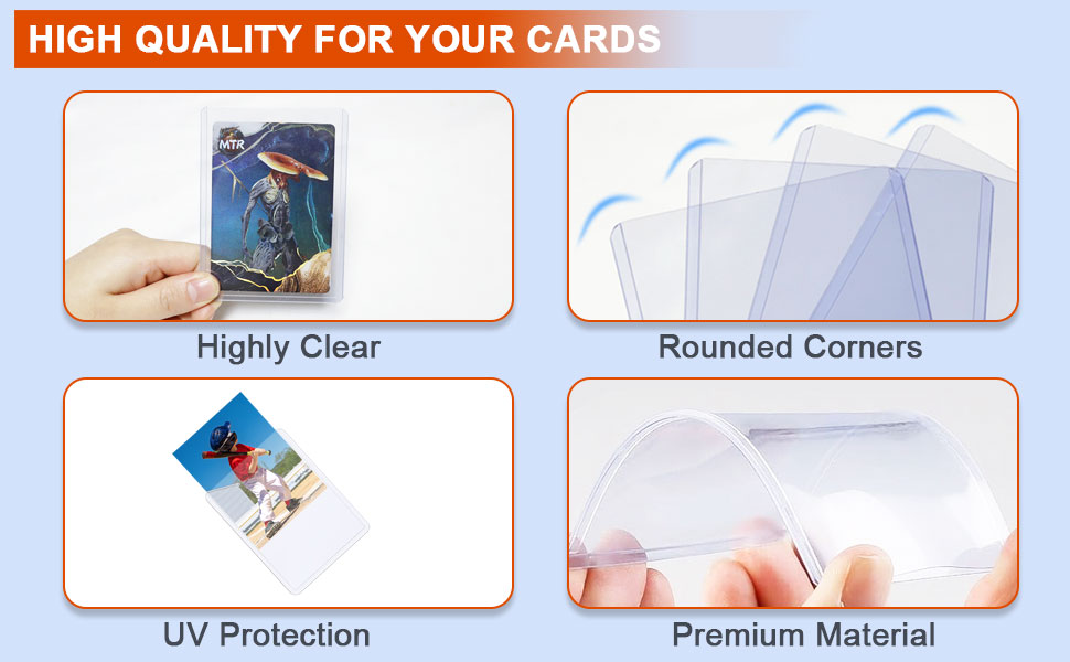 【مادة عالية الجودة وواضحة وسميكة】حاملات البطاقات مصنوعة من مادة البولي إيثيلين تيرفثالات عالية الجودة الخالية من الأحماض والخدوش وشديدة التحمل، والجودة الممتازة تسمح لها بتحمل الاستخدام اليومي من قبل أي جامعي بطاقات. يتيح لك الوضوح العالي قراءة بطاقاتك دون عناء