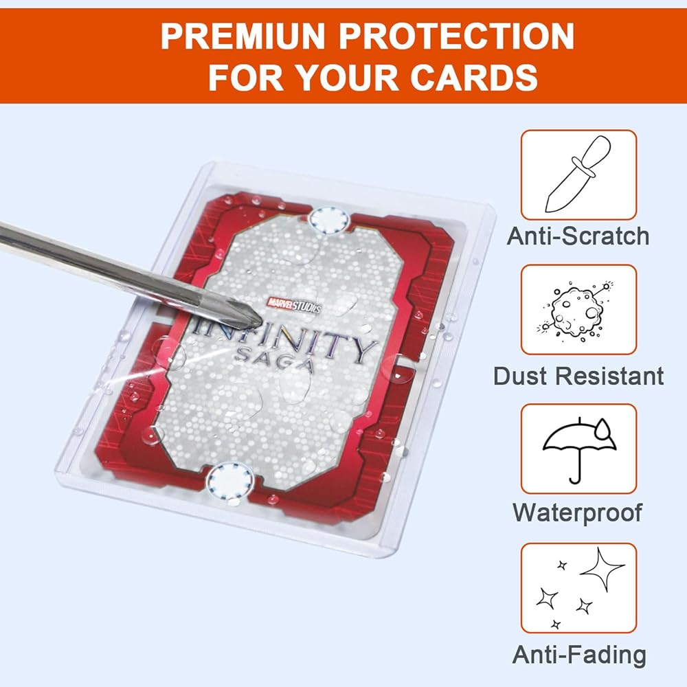 【حماية ممتازة】أكمام البطاقات البلاستيكية الصلبة قوية بما يكفي للحفاظ على بطاقات التداول القابلة للتحصيل آمنة من الماء والأوساخ والغبار مع الحفاظ على مظهرها الجديد. يمنع البطاقات الثمينة القابلة للجمع من الانحناء والاهتراء والتلف أثناء النقل