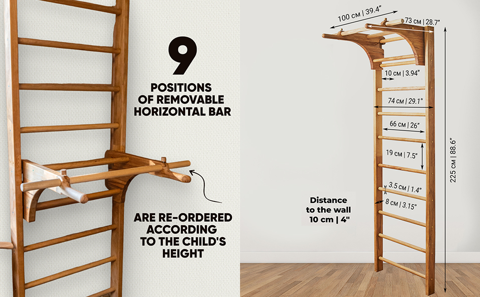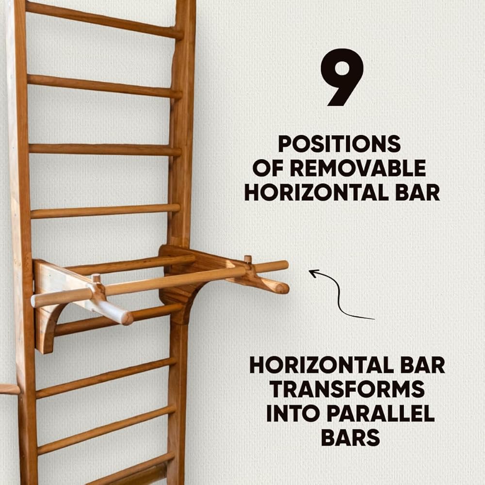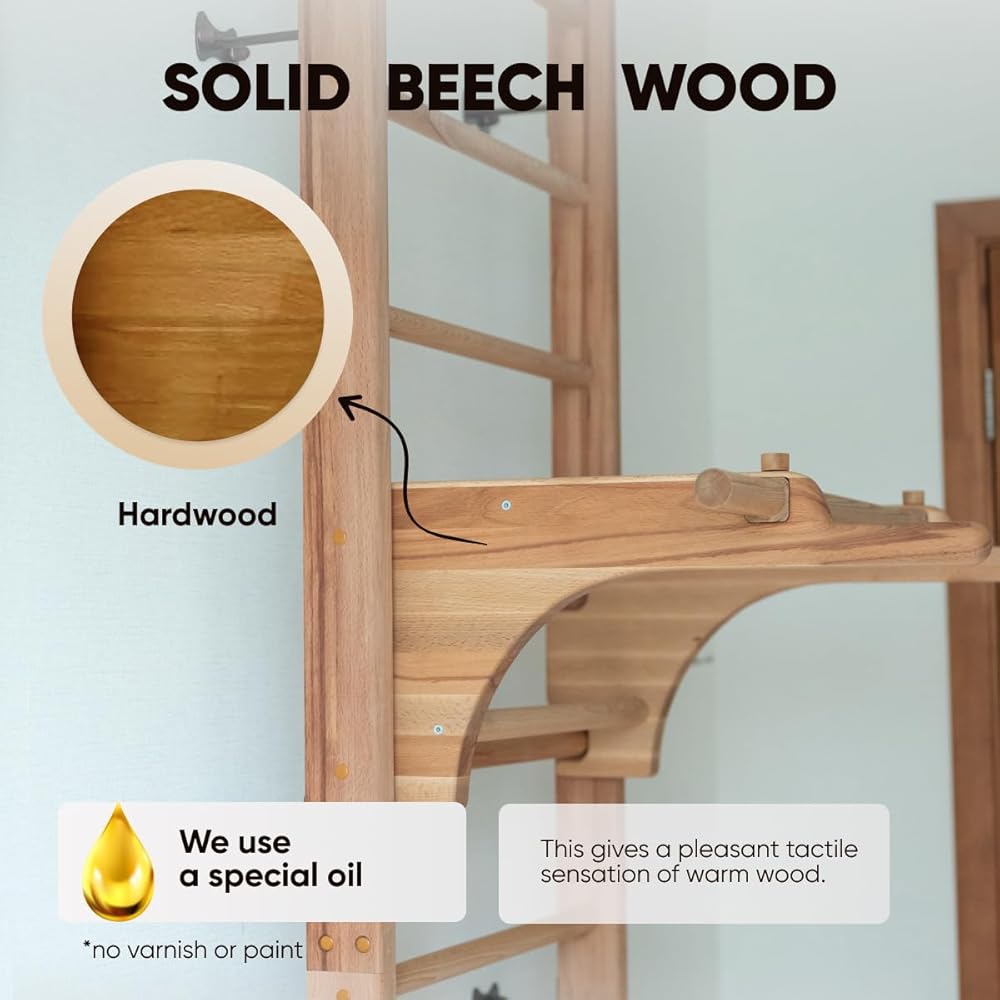 قضبان حائط سلم سويدية للأطفال والكبار، مصنوعة من خشب الزان الصلب، تتحمل أحمالًا تصل إلى 880 رطلاً، مع شريط سحب قابل للإزالة، وبار غمس، والجمباز والتمارين الرياضية في صالة الألعاب الرياضية إندور