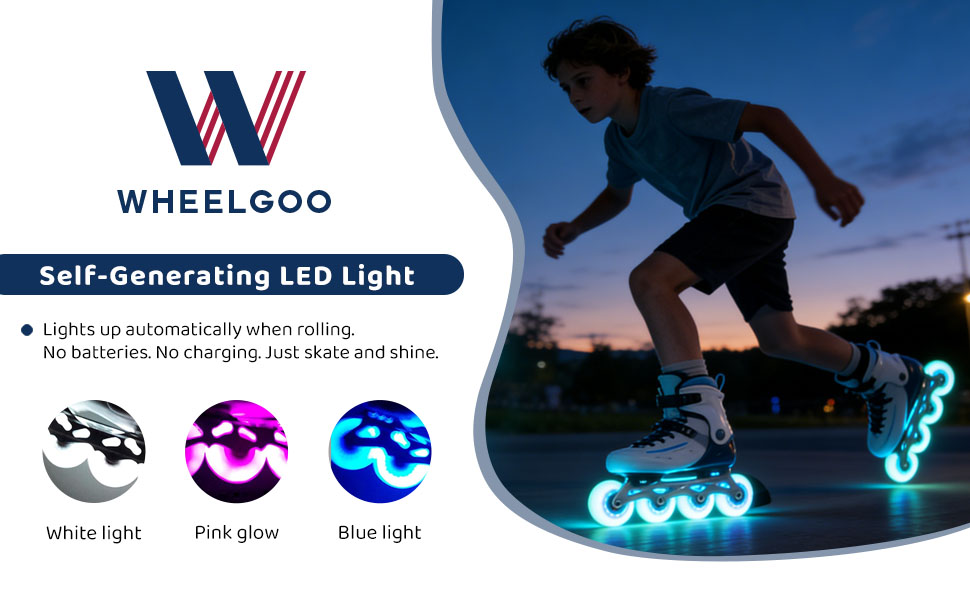عجلات LED ذاتية الإضاءة مقاس 70 مم - لا تحتاج إلى بطاريات، مولد مغناطيسي مدمج يضيء العجلات تلقائيًا أثناء التزلج. لا توجد بطاريات ولا شحن - سرعة أكثر سطوعًا ومتعة أطول.