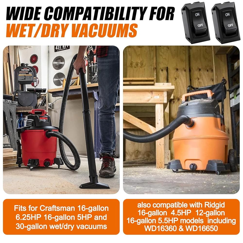 توافق واسع للمكانس الكهربائية الرطبة/الجافة - مفاتيح الروك 120 فولت SPST تناسب الحرفيين 16 جالون 6.25 حصان، 16 جالون 5 حصان و30 جالون مكانس رطبة/جافة؛ متوافق أيضًا مع موديلات Ridgid 16 جالون، 4.5 حصان، 12 جالون، 16 جالون 5.5 حصان، بما في ذلك WD16360 وWD16650. مثالية كمفتاح بديل مباشر لهذه المكانس الكهربائية المشهورة. استبدل مفتاح التبديل 12313