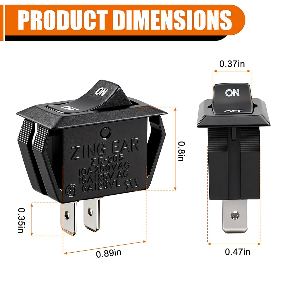 تصنيف كهربائي موثوق - تم تصنيف مفاتيح الاستبدال هذه في المتجر بـ SPST 10A 250VAC، 15A 125VAC / ¾ HP، مما يضمن التشغيل الآمن والمتين لكل من المعدات ذات الجهد العالي والمعدات التي تعمل بمحرك في المنزل أو ورشة العمل أو بيئات موقع العمل.