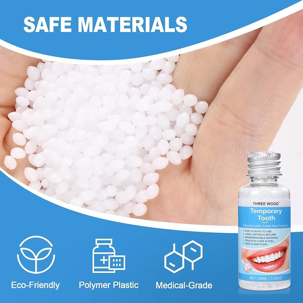 Quick Tooth Replacement at Home - Restore missing or broken teeth in just minutes with this easy-to-use temporary kit. Enjoy a natural-looking smile without the long wait for a dental visit.