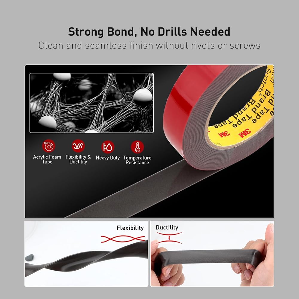 ربط فائق: يظل شريط التثبيت 4611 مرنًا ولكنه لا ينفصل من تلقاء نفسه، مما يوفر أداءً خارجيًا موثوقًا للتطبيقات المطلوبة مثل كاميرات أجهزة القياس والمعدات المثبتة على المركبات، ويلتصق بأمان على الأسطح المختلفة. بسمك 45 مل (1.1 ملم)، يوفر هذا الشريط رابطة قوية، ويعمل كبديل سلس للمسامير أو البراغي أو اللحامات أو المواد اللاصقة السائلة. فهو يربط المواد المختلفة أو الرفيعة أو خفيفة الوزن بشكل فعال، ويزيد من الكفاءة عن طريق التخلص من الخطوات.