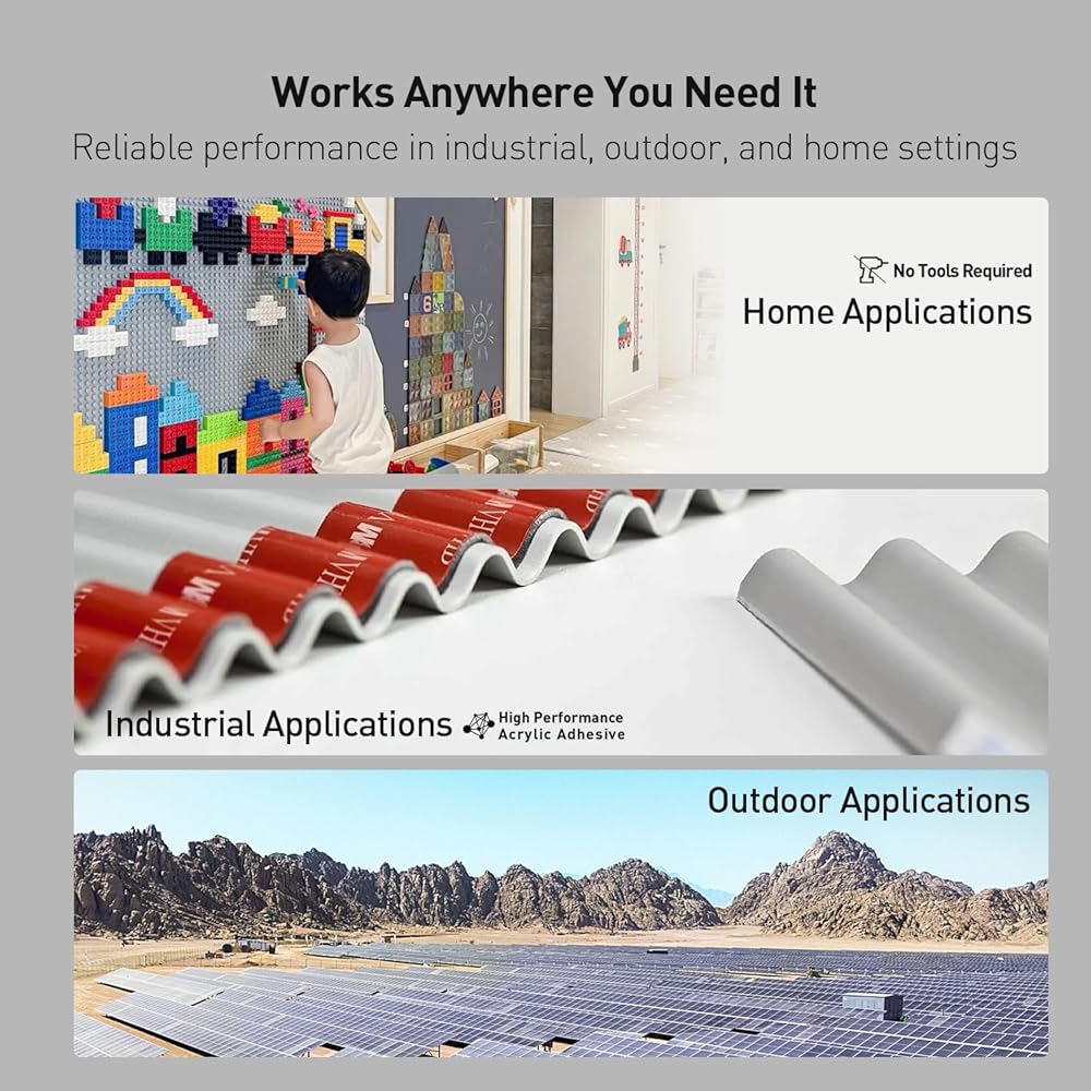 الأسطح القابلة للتطبيق: يرتبط الشريط مزدوج الجوانب 4611 بشكل فعال مع ركائز مختلفة، بما في ذلك الألومنيوم والفولاذ والزجاج والرخام والبلاط والدهانات المطلية بالمسحوق والمواد المركبة والبلاستيك والأخشاب الصلبة. ومع ذلك، فهو غير مناسب للأسطح شديدة النسيج أو الجدران المطلية، لأنه قد يزيل الطلاء عند إزالته. توفر خصائصه اللزجة المرنة الفريدة التصاقًا قويًا لكل من المواد ذات الطاقة السطحية العالية والمنخفضة، مما يجعله مثاليًا للمشاريع المتنوعة.
