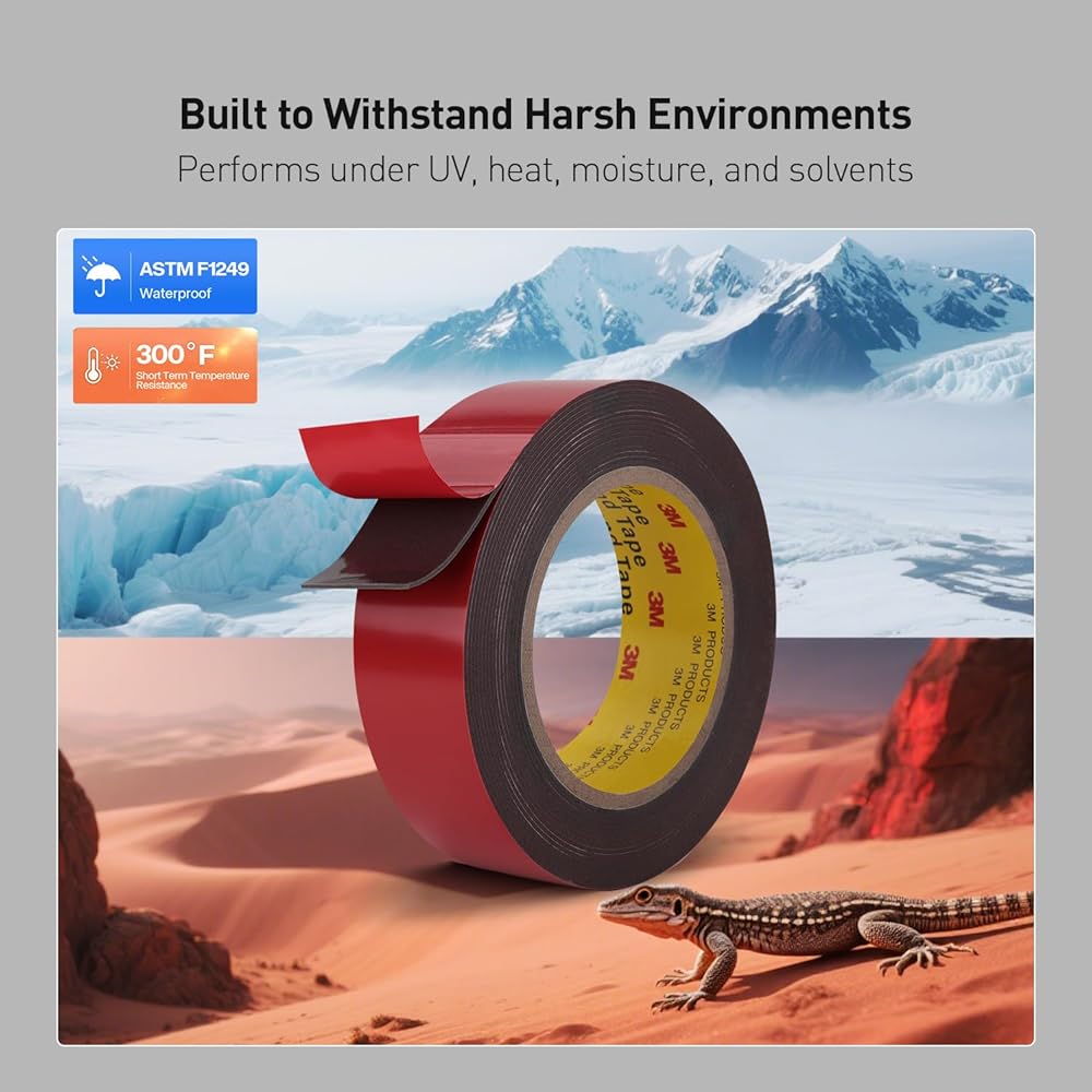 أداء استثنائي: يتميز الشريط مزدوج الجوانب برغوة الأكريليك مع لاصق للأغراض العامة، مما يوفر قوة قص عالية، والتصاق قوي بالسطح، ويتحمل درجات الحرارة القصوى، ويوفر أداءً ممتازًا يصل إلى 300 درجة فهرنهايت (149 درجة مئوية) ويمكنه تحمل التعرض قصير المدى حتى 450 درجة فهرنهايت (232 درجة مئوية). يجعلها مناسبة للترابط قبل عمليات الطلاء ذات درجة الحرارة العالية وموثوق بها في البيئات الصعبة حيث تكون الحرارة عاملاً. أكثر متانة وموثوقية وأسهل في الإزالة بشكل نظيف (من الأسطح العارية) من الأشرطة الإسفنجية التقليدية التي تنقسم أو تتصلب بمرور الوقت.