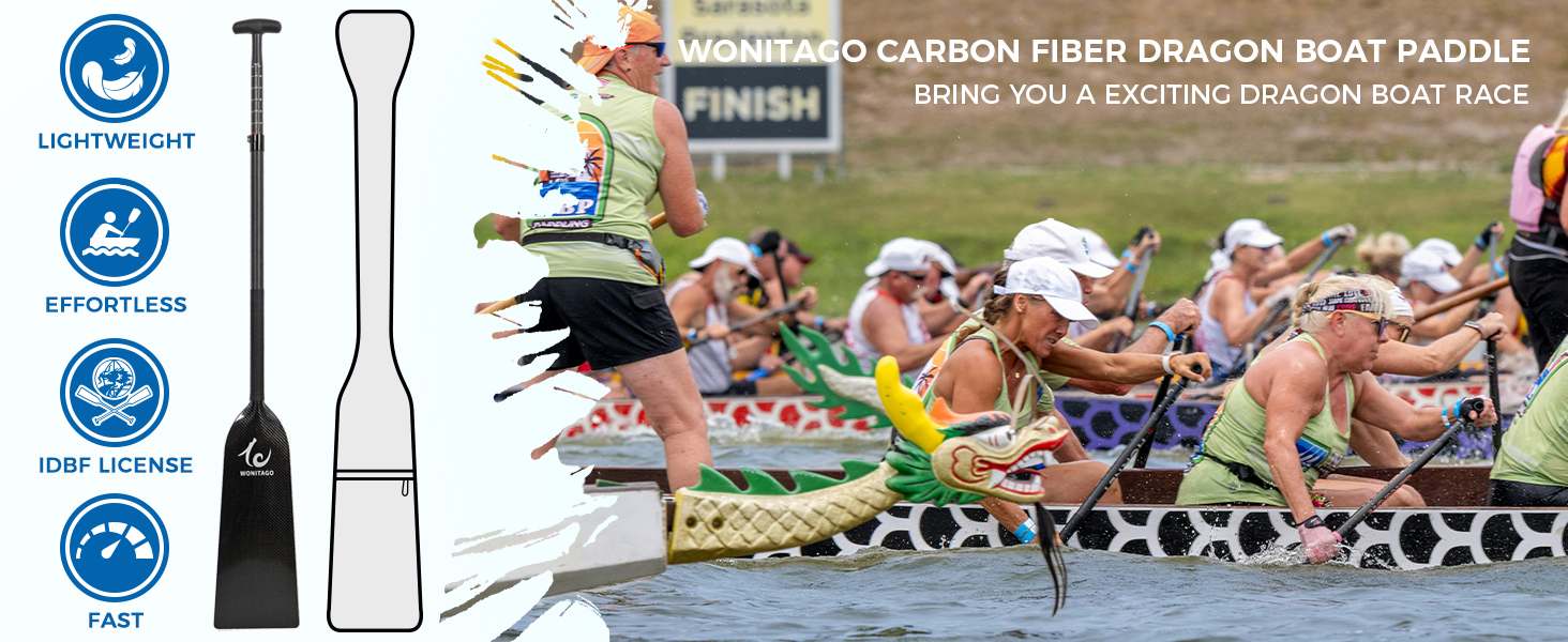 معتمد من IDBF --- رقم IDBF: 3361. يمكن لهذا المجداف المشاركة في مسابقة قوارب التنين. مناسبة لسباقات المسافات القصيرة وسباقات المسافات الطويلة التي تزيد عن 500 متر
