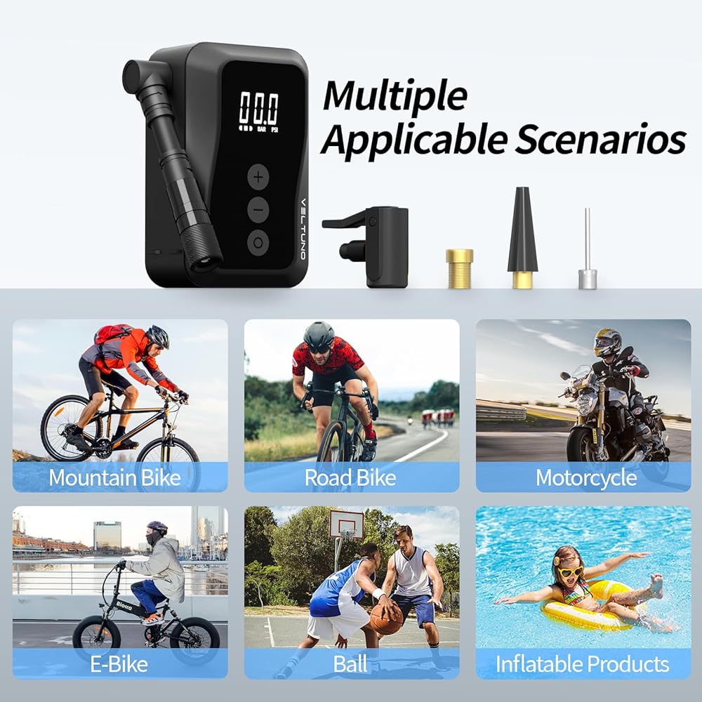 متعددة الأغراض للدراجات والرياضة: بالإضافة إلى المركبات، يعمل هذا الجهاز متعدد الاستخدامات بمثابة مضخة كرة كهربائية ممتازة لكرات السلة وكرات القدم والألعاب القابلة للنفخ باستخدام ملحقات الإبرة المتضمنة. إنها مجموعة شاملة لأي نمط حياة نشط، بما في ذلك حقيبة تخزين وكابل شحن من النوع C. تعتبر مضخة الإطارات المحمولة هذه الأداة المثالية لراكبي الدراجات وعشاق الرياضة والاستعداد لحالات الطوارئ