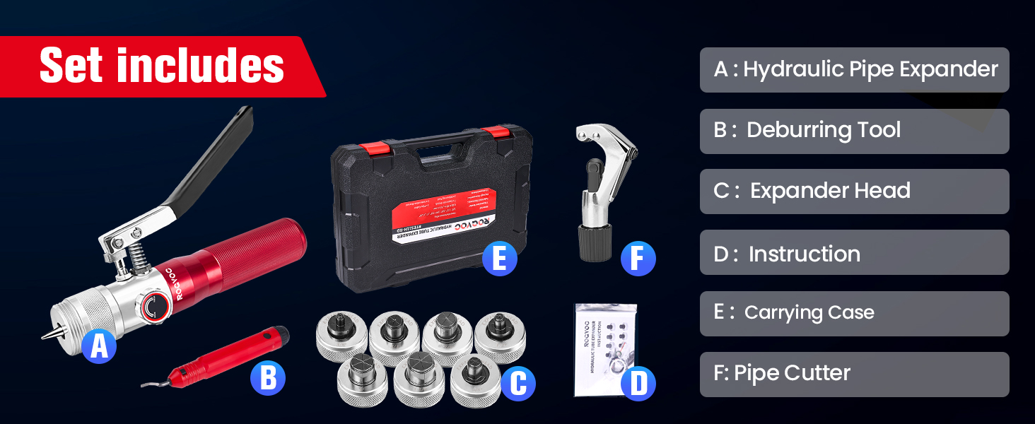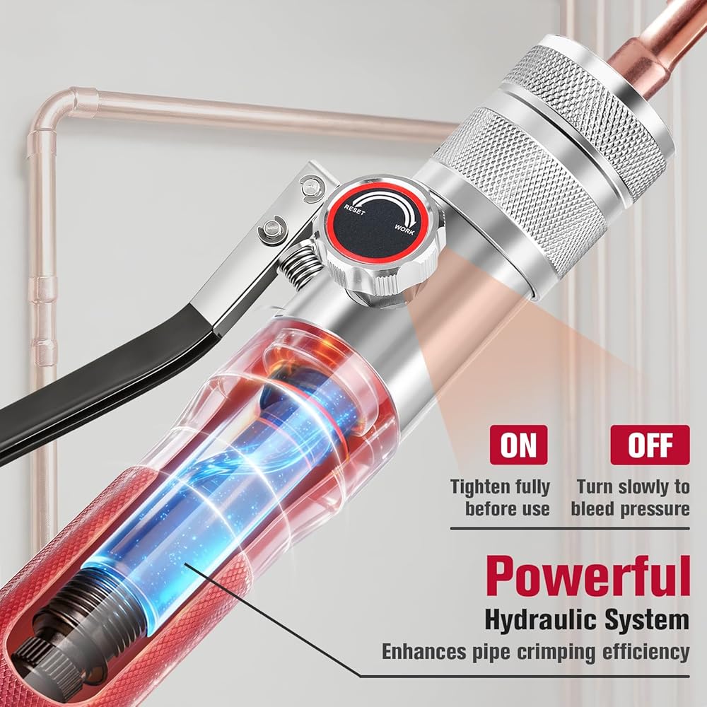 [تشغيل سهل بيد واحدة] قم بالترقية إلى موسع الأنبوب الهيدروليكي ROGVOC. يتيح المقبض الهيدروليكي اليدوي التشغيل السلس بيد واحدة، مما يزيل تعب اليد. يمكنك تحقيق عملية تأرجح احترافية للأنابيب بسهولة، مما يعزز بشكل كبير كفاءة عمل نظام التدفئة والتهوية وتكييف الهواء (HVAC).