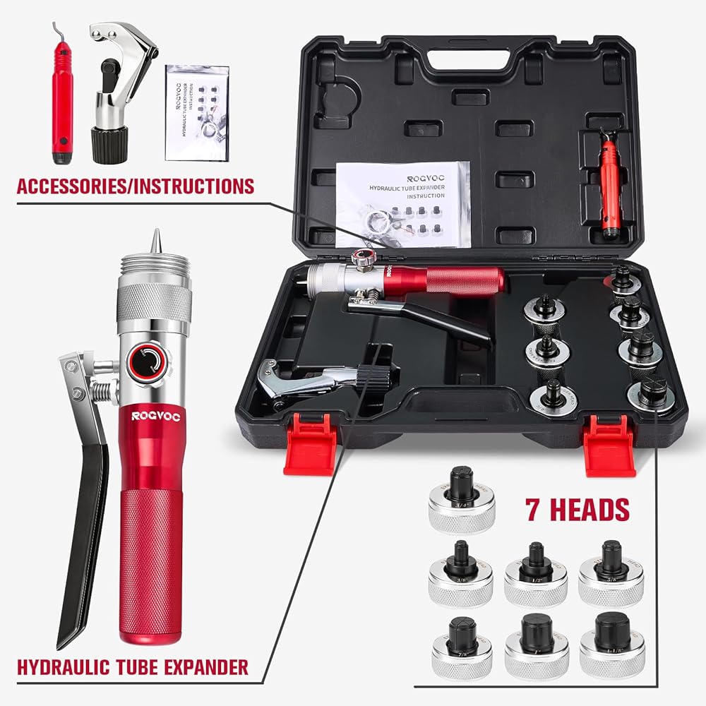 [مجموعة احترافية محمولة] جميع الأدوات مؤمنة في حقيبة حمل متينة. مجموعة موسعات الأنابيب الهيدروليكية المحمولة الكاملة للفنيين والسباكين الذين يحتاجون إلى الكفاءة أثناء التنقل