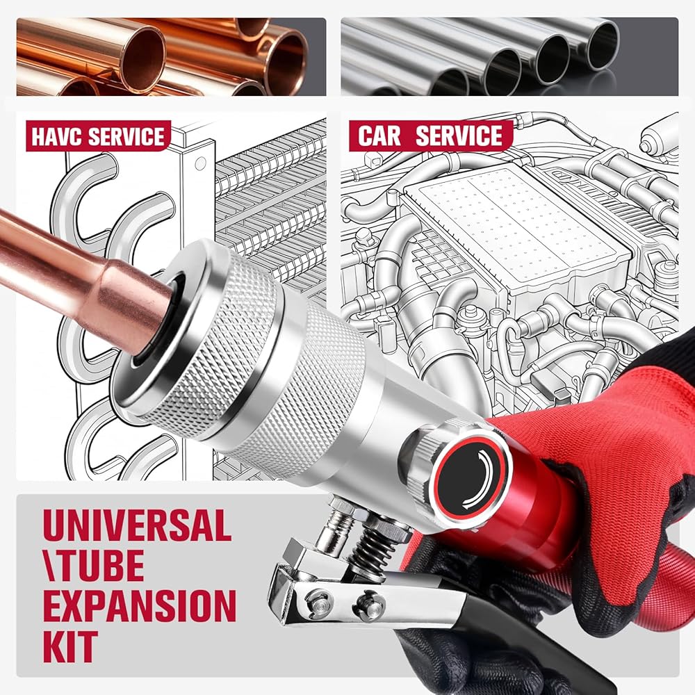 [وصلات دقيقة ومانع للتسرب] تتضمن أداة إزالة الأزيز وقاطع أنبوب لإعداد مثالي. قم بإنشاء توسعات موحدة في أنابيب النحاس والألمنيوم الناعمة، مما يضمن إحكام الغلق وعدم التسرب