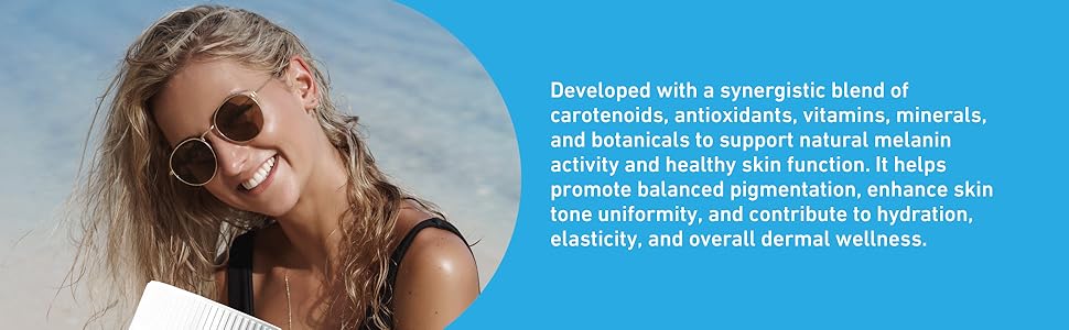 حبوب تسمير البشرة للرجال والنساء - كبسولات تسمير البشرة الذاتية التي تعمل بسرعة بدون التعرض للشمس - حبوب مكملات الميلانين الطبيعية عن طريق الفم من أجل توهج ذهبي صحي بدون شمس - خالية من السكر، خالية من الغلوتين، نباتي، غير معدلة وراثيًا