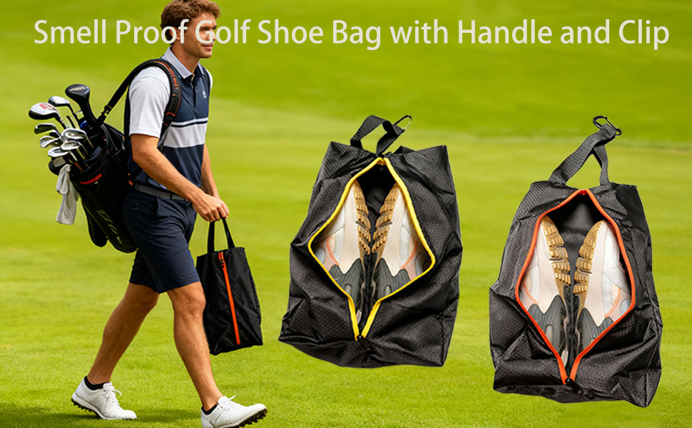 • حقيبة أحذية مقاومة للرائحة: حقيبة أحذية الجولف هذه مصنوعة من مادة قماش أكسفورد عالية الجودة، وتتميز بالمتانة ومقاومة للتمزق. مع سحاب محكم الغلق، حتى أحذيتك ذات الرائحة الكريهة لا داعي للقلق بشأن تسرب الرائحة.