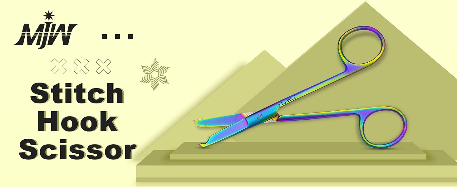 يتميز مقص الغرز بخطاف صغير على شكل هلال على إحدى الحواف وهو مصمم خصيصًا للانزلاق تحت الغرز لرفعها بلطف لسهولة القطع.