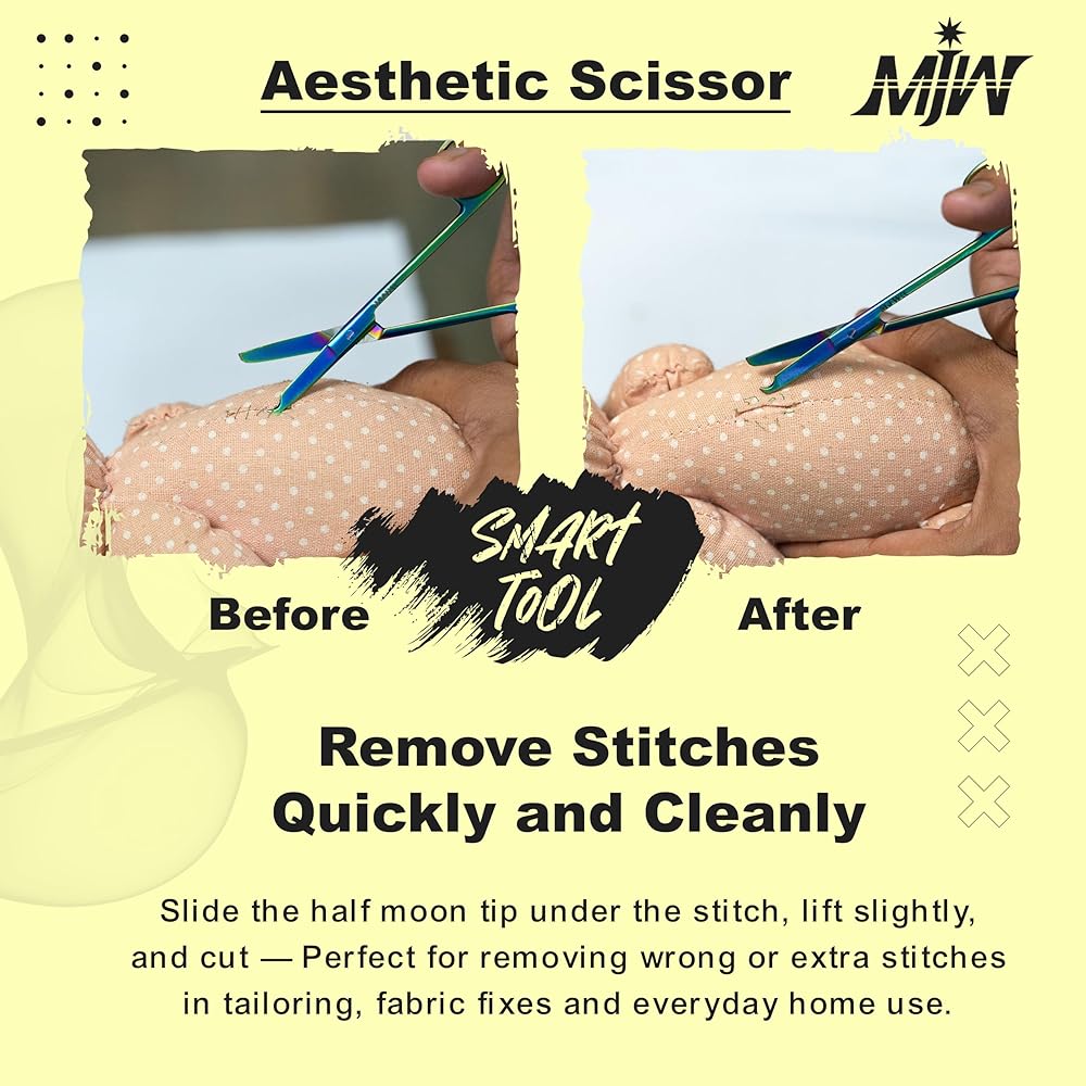 يتميز مقص القماش بطبقة من التيتانيوم متعدد الألوان للحصول على لمسة نهائية أنيقة وملفتة للنظر. تضيف اللمسة الجمالية لمقص الخياطة الأناقة والتفرد إلى الأداء العام للأداة.
