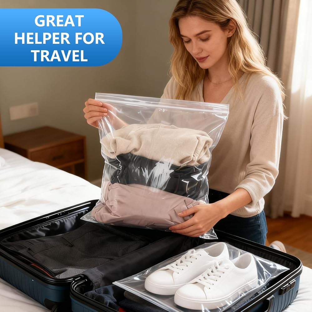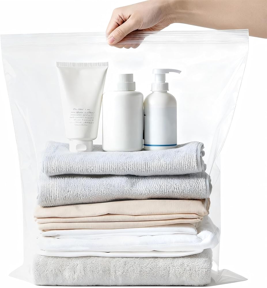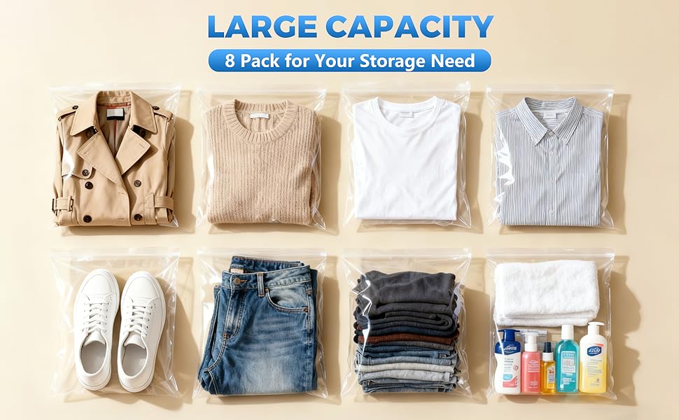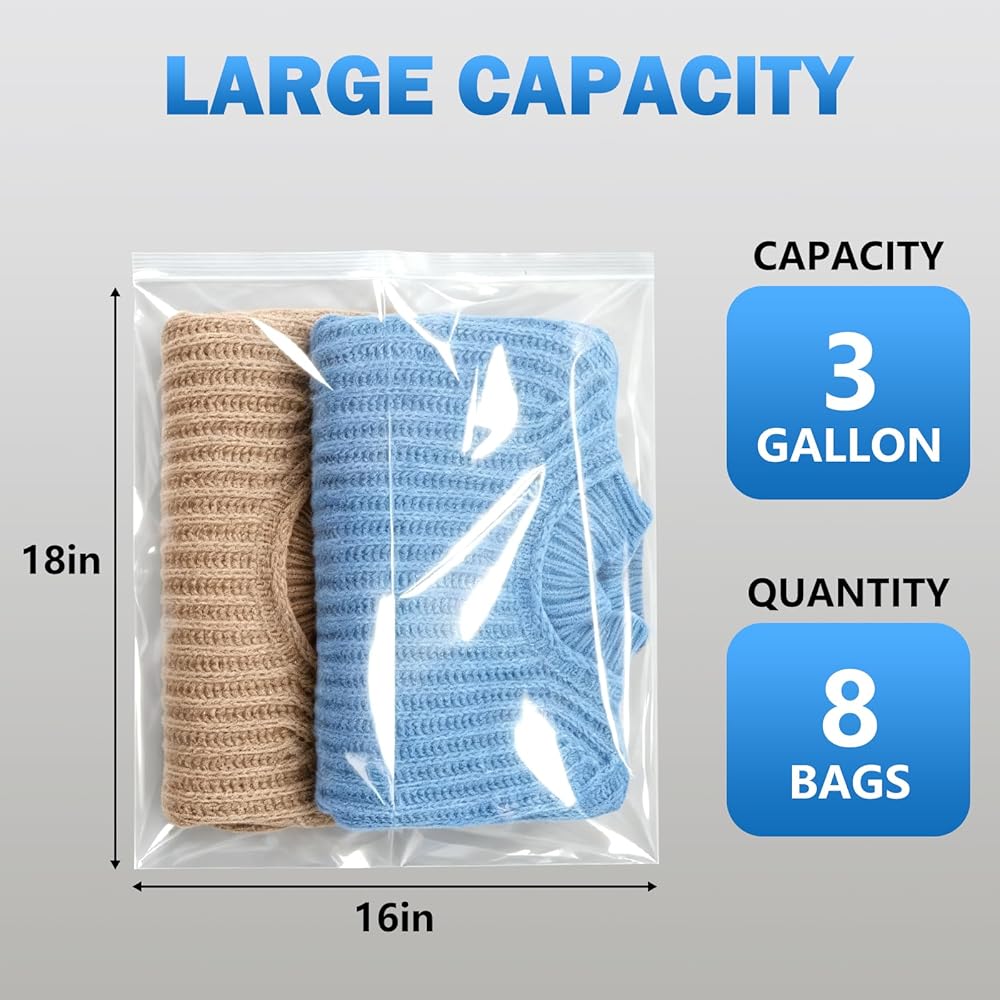 8 عبوات من أكياس تخزين بلاستيكية كبيرة، حجم كبير 3 جالون، 40.64 سم × 45.72 سم، حقيبة كبيرة بسحاب شفاف للملابس، والسفر، والحركة، وحقائب كبيرة بسحاب مع قفل قابل لإعادة الإغلاق، بسمك 2 مل