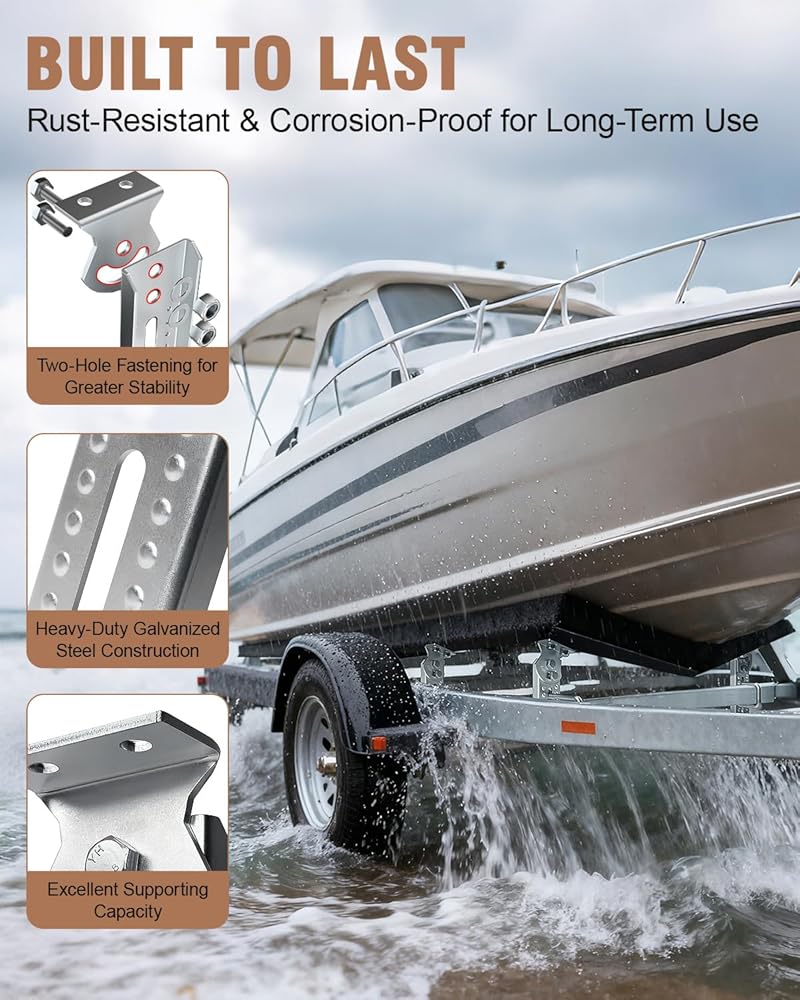 • مصممة لتدوم طويلاً - مصنوعة من الفولاذ المجلفن عالي التحمل، هذه الدعامات ذات طابقين لمقطورة القارب تتحمل المياه المالحة القاسية وبيئات المياه العذبة. يضمن الطلاء المقاوم للصدأ متانة طويلة الأمد، وهو مثالي لملحقات المقطورات البحرية.