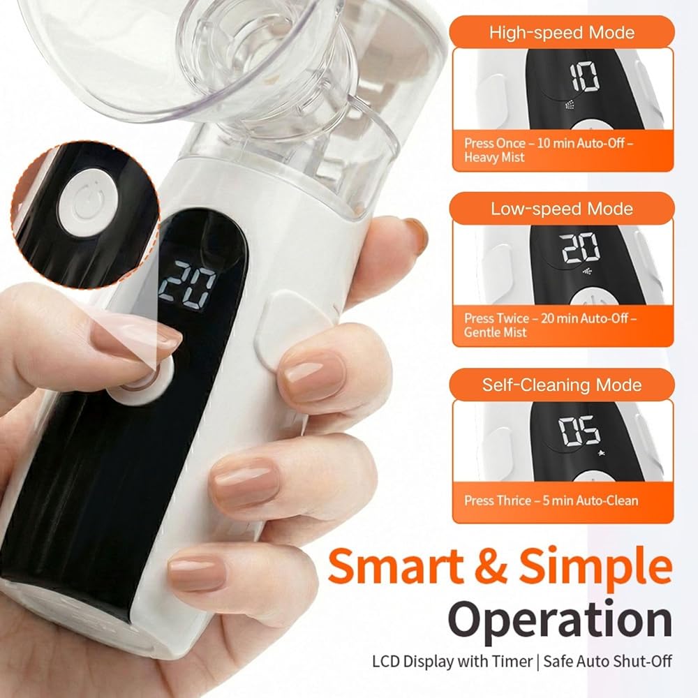 One-Touch Self-Cleaning Mode: Keep your device performing at its best with the built-in cleaning cycle. From shutdown state, short-press the power button three times to activate 5-minute intermittent spray cleaning, which helps clear residual liquid from the mesh. Pro Tip: After each use, add a small amount of mineral water to the cup and run for 1–3 minutes for routine maintenance.