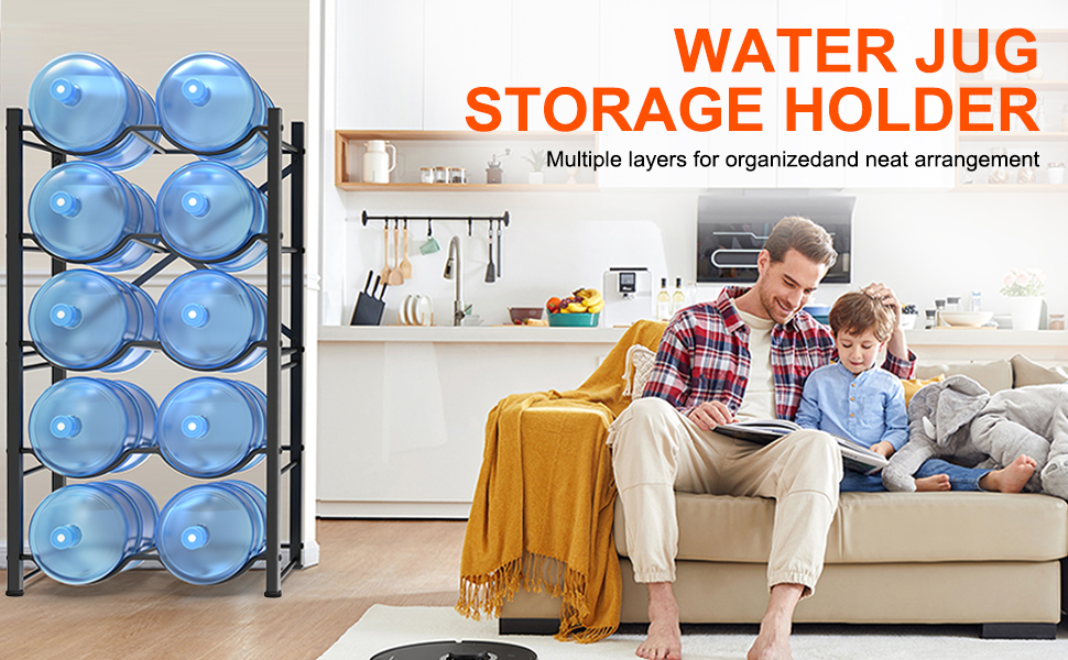 【توفير المساحة】ينظم رف إبريق الماء بسعة 5 جالون زجاجات المياه الخاصة بك على رف واحد لتوفير مساحة الأرضية والحفاظ عليها أنيقة. بفضل الهيكل المدمج والمظهر الأنيق، يعد رف تخزين زجاجات المياه هذا حلاً تنظيميًا مثاليًا للمكاتب وغرف الاستراحة والمطابخ وغرف التخزين والجراجات وما إلى ذلك.