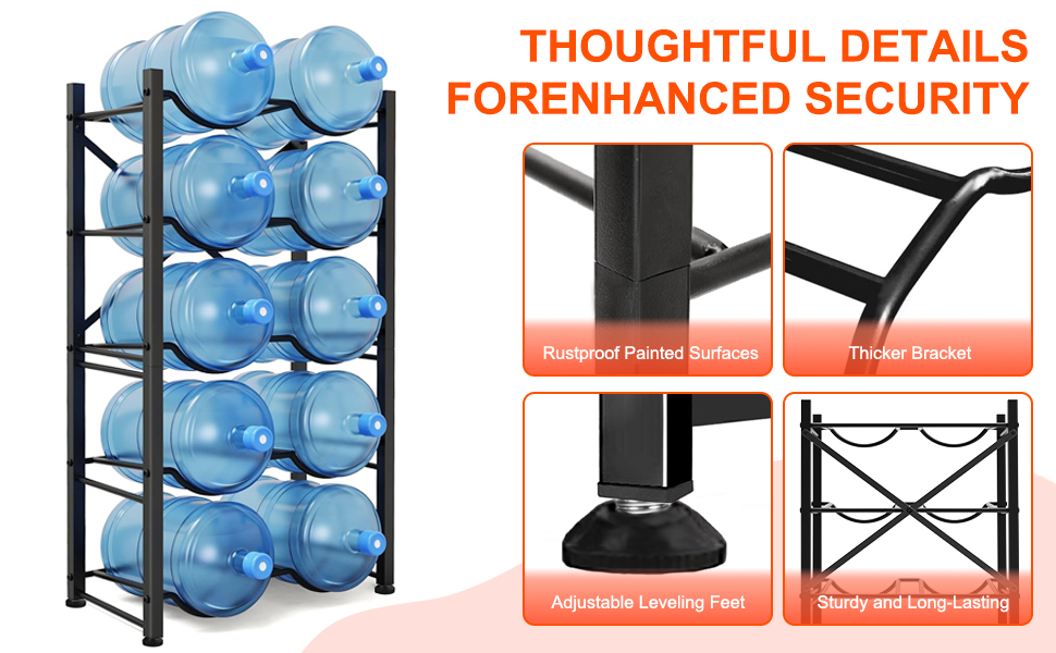 【أقدام مطاطية】مجهز بـ 4 أقدام قابلة للتعديل في الأسفل، يمكن لحامل زجاجة المياه بسعة 5 جالون أن يحمل أباريق المياه بقوة مع منع الأرضيات من الخدوش والتلف.