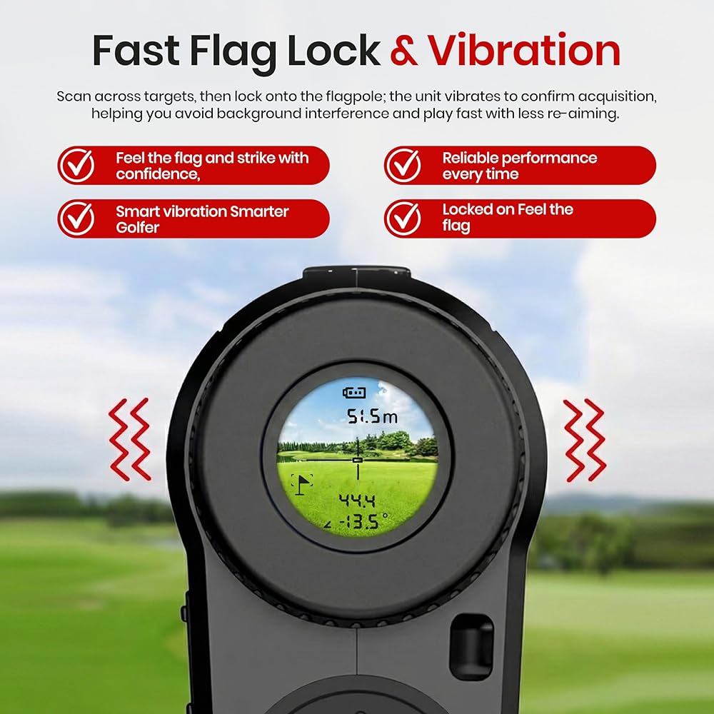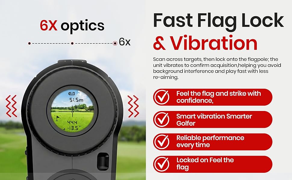 محدد مدى الجولف مع منحدر - جهاز تحديد نطاق الجولف بالليزر القابل لإعادة الشحن مع أوضاع الجولة، اهتزاز قفل العلم، استهداف المسح الضوئي - نطاق تكبير 6X - ياردات، أمتار، مكتشف مسافة القدمين للاعبي الغولف