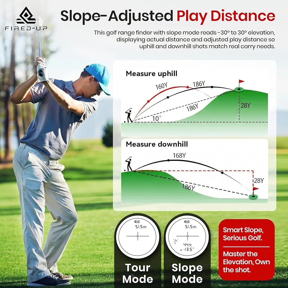 مسافة لعب قابلة للتعديل - جهاز تحديد نطاق الجولف هذا مع وضع المنحدر يقرأ ارتفاع -30 درجة إلى 30 درجة، ويعرض المسافة الفعلية ومسافة اللعب المعدلة بحيث تتوافق اللقطات الصاعدة والهبوطية مع احتياجات الحمل الحقيقية.