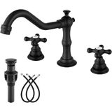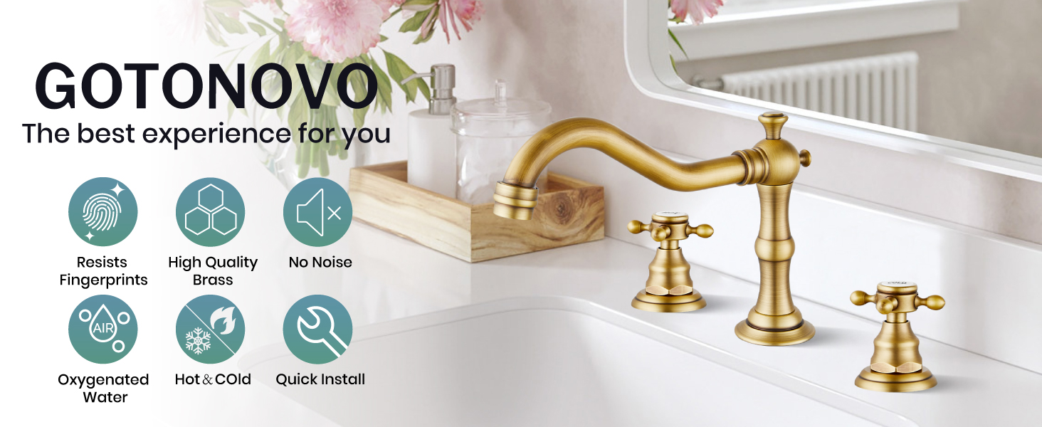 صنبور الحمام gotonovo 3 فتحات 8 بوصة صنبور حوض الحمام واسع الانتشار 2 مقابض متقاطعة صنبور خلاط مرحاض عتيق مع استنزاف منبثق، ملصق بارد ساخن، نحاس عتيق in Kuwait
