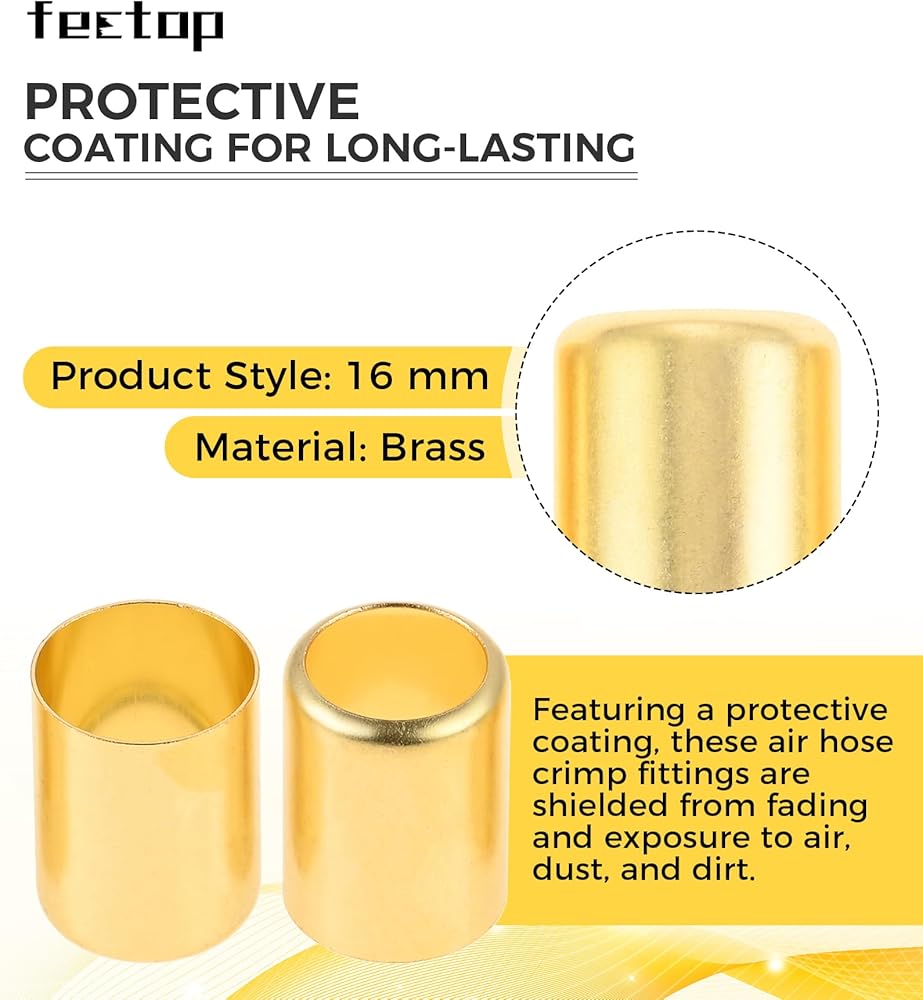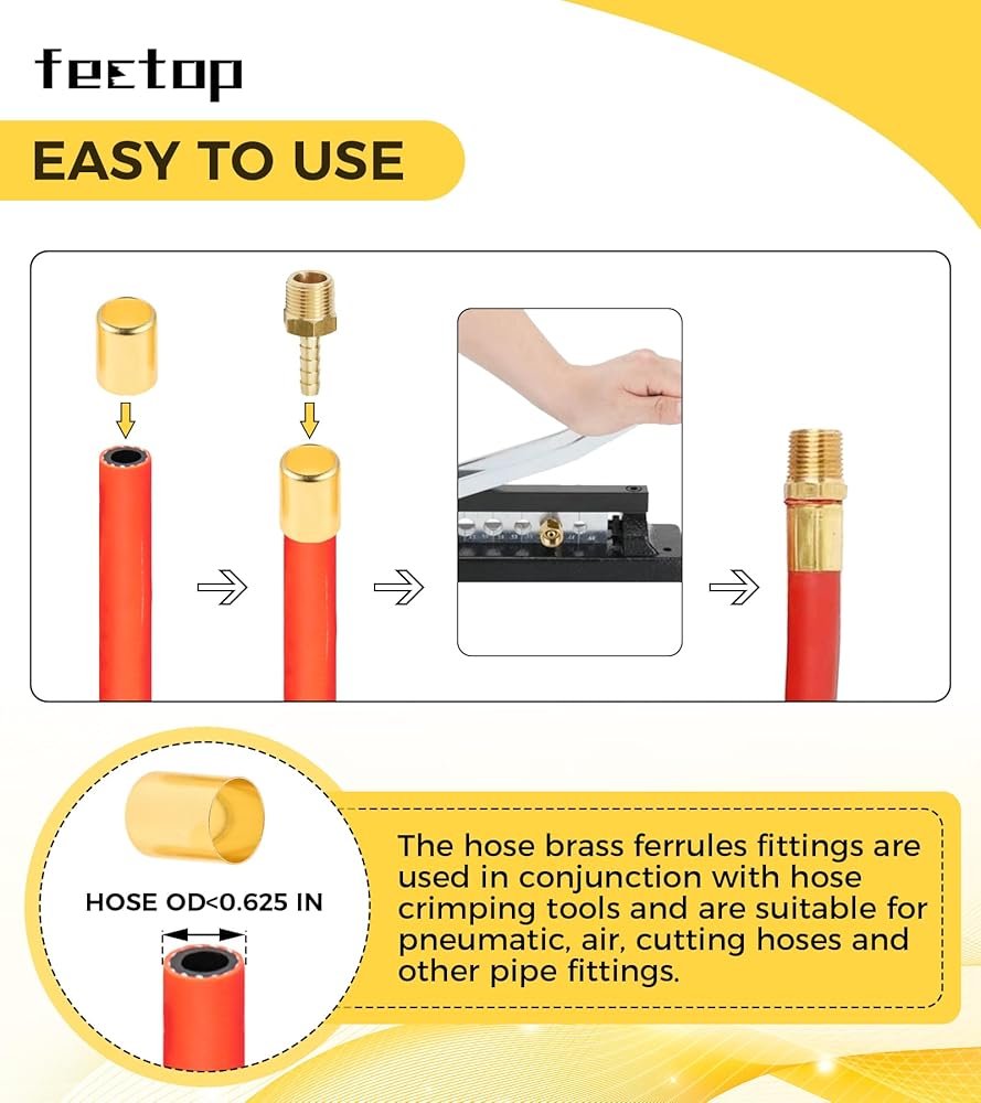 【استخدام واسع】يتم استخدام تركيبات الحلقات النحاسية للخرطوم جنبًا إلى جنب مع أدوات تجعيد الخراطيم وهي مناسبة لخراطيم الهواء والهواء والقطع وتركيبات الأنابيب الأخرى. تم تصنيفها لضغوط التشغيل التي تصل إلى 500 رطل لكل بوصة مربعة وضغوط التمزق حتى 2000 رطل لكل بوصة مربعة.
