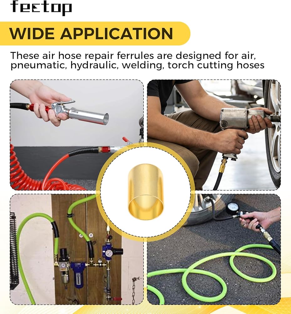 25 قطعة من حلقات خرطوم 7327 من النحاس، مقاس 0.625 بوصة معرف × 1 بوصة حلقات إصلاح خرطوم طويلة لخرطوم شعلة الهواء الأسيتيلين، تستخدم مع مجموعة أدوات المكشكش