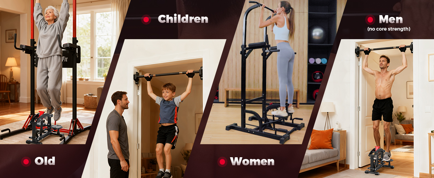 • Universal Compatibility & Beginner-Friendly: Works flawlessly with power towers, pull-up bars, dip stands, gymnastics bars, and more! Perfect for strength training newbies, seniors, women, kids, heavier individuals, and underweight users. Safely build core power with this versatile pull up assist.